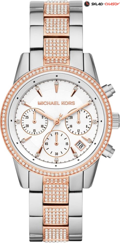 Корпус, браслет и циферблат украшены кристаллами.