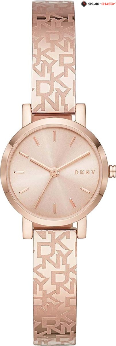 Модный аксессуар с эффектным дизайном прекрасно дополнит ваш образ в стиле casual. Женские часы с круглым стальным корпусом. Циферблат выполнен по технологии Sunray (солнечные лучи) и украшен логотипом бренда. Метки в виде штрихов. Стальной браслет с принтом DKNY.