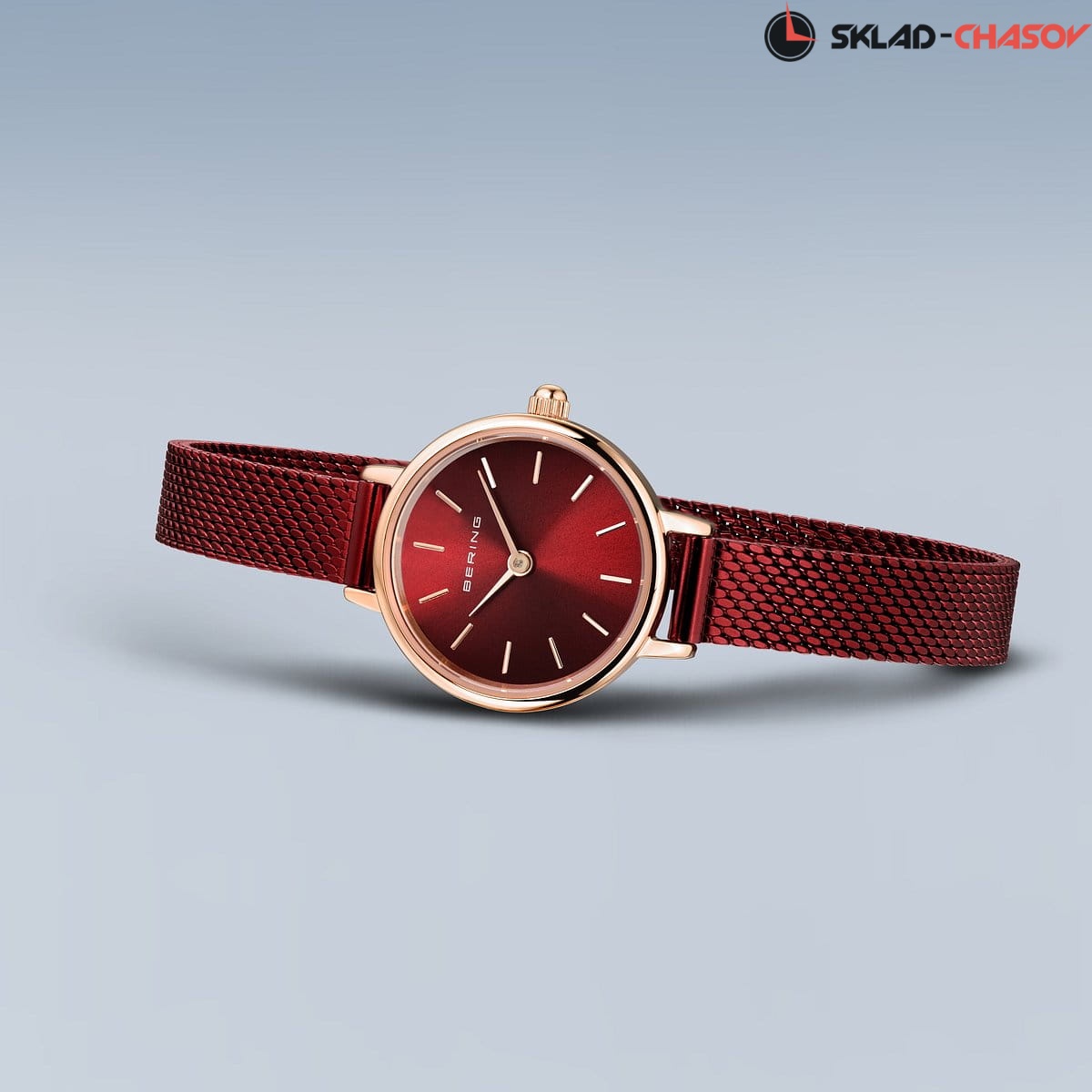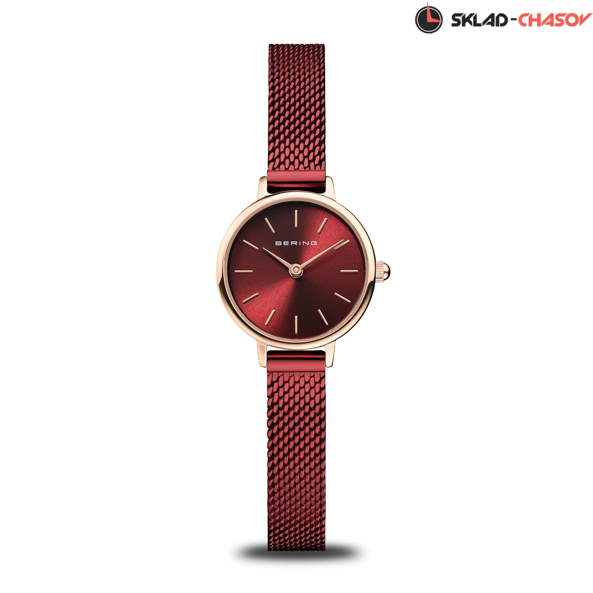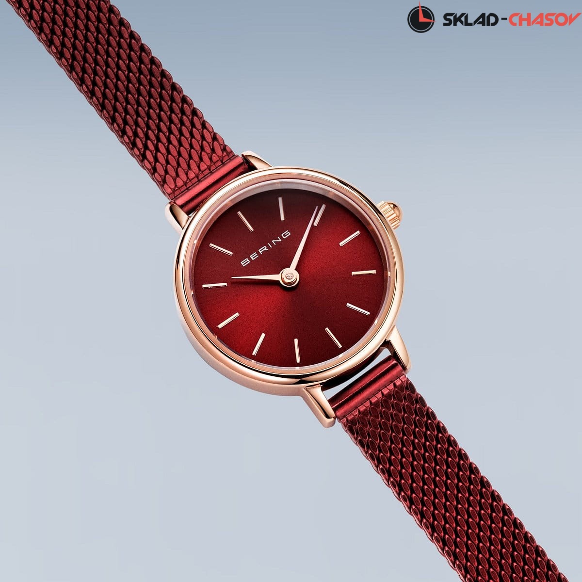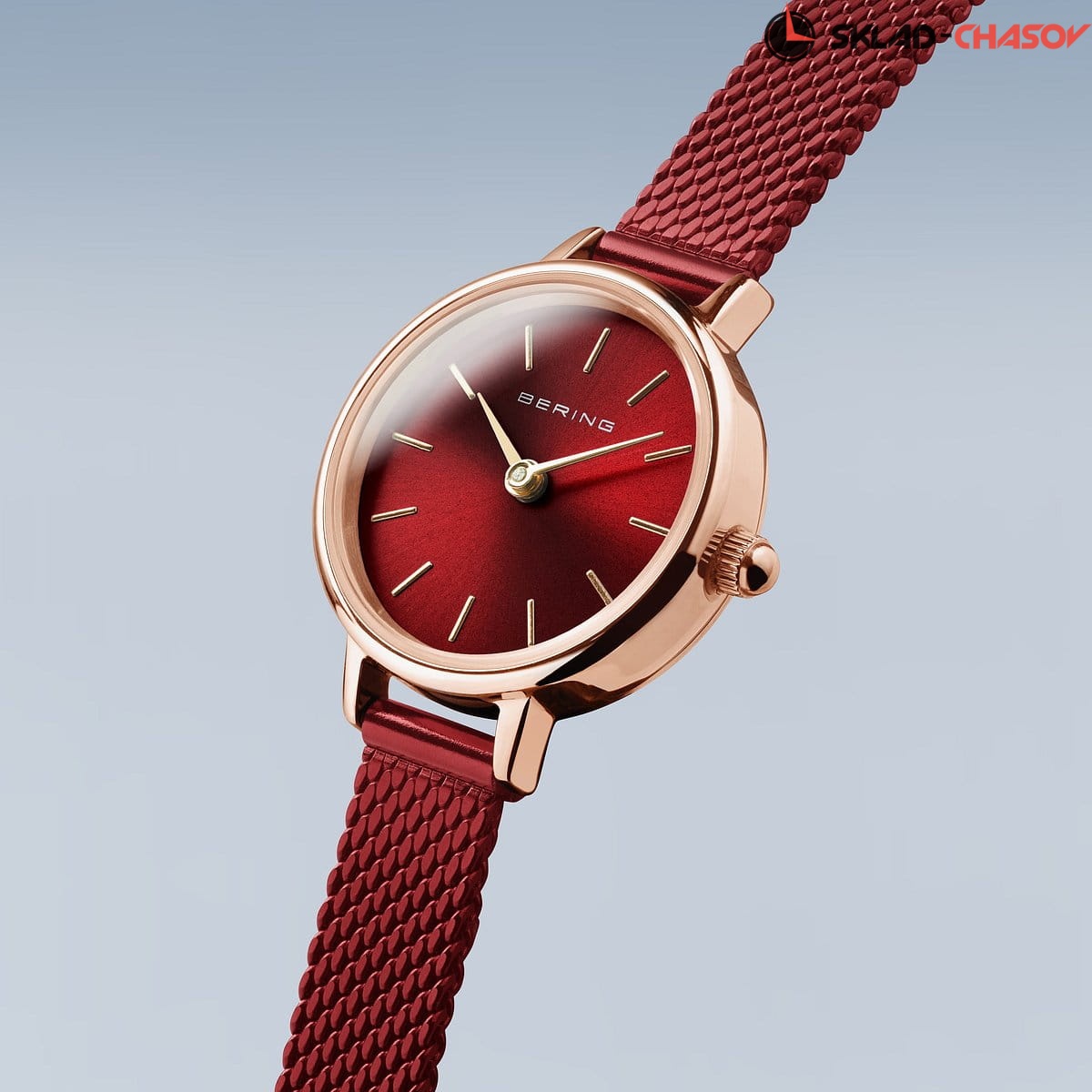 Красный циферблат с гильошированием в виде солнечных лучей.