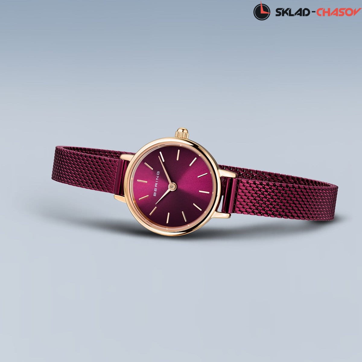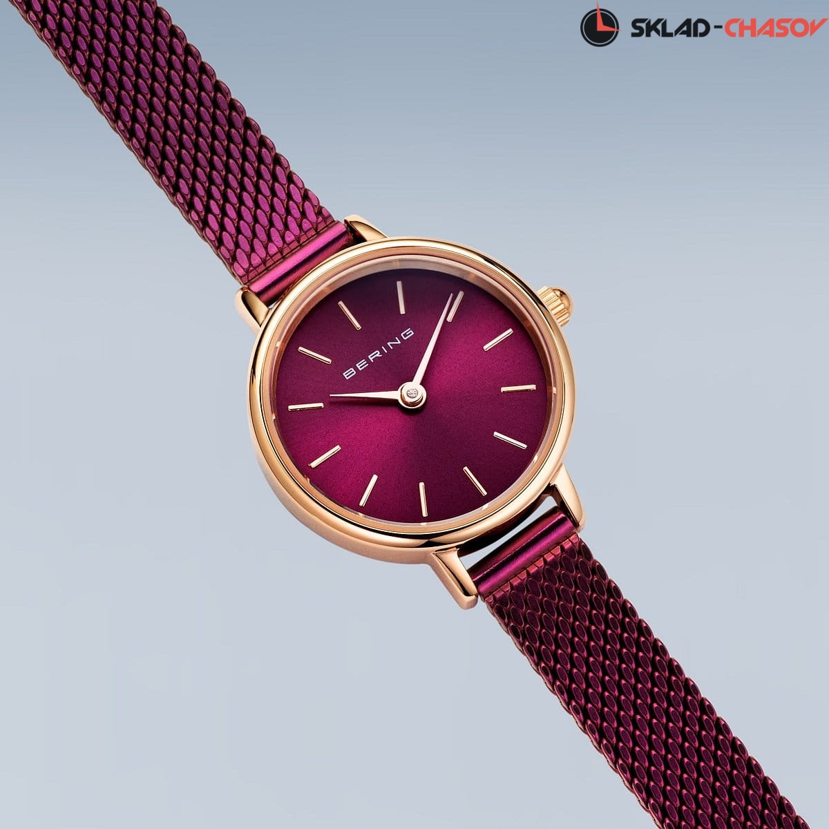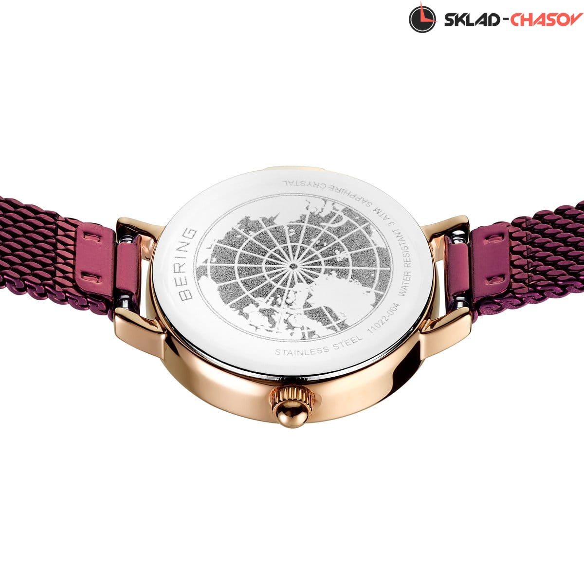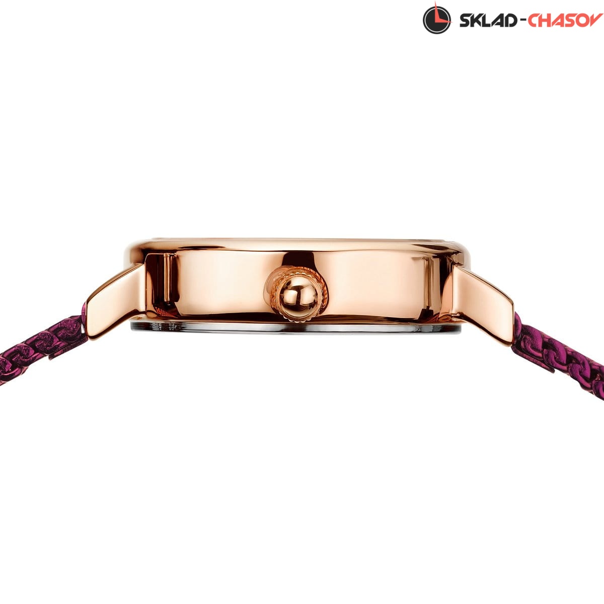 Полированный стальной корпус с розовым IP-покрытием. Диаметр 22мм.