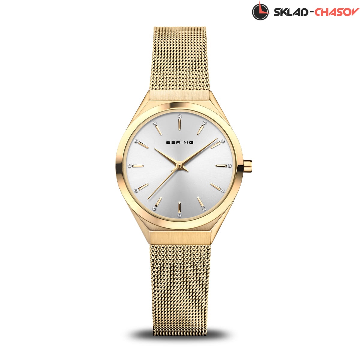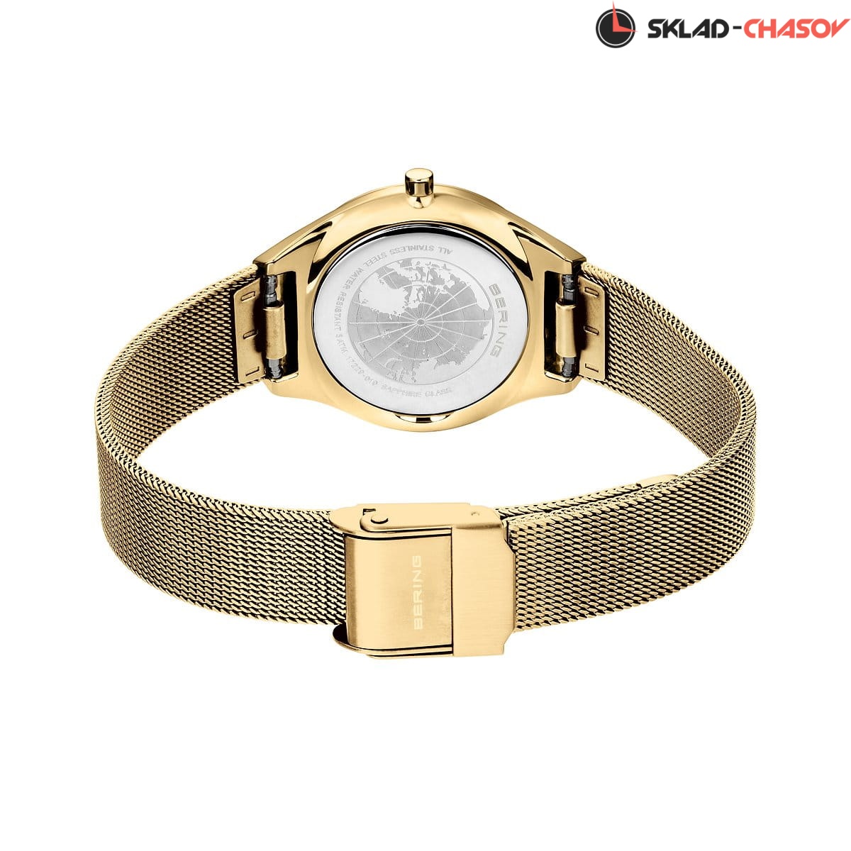 Стальной корпус с полировкой, сатинажем и золотым IP-покрытием. Диаметр 29мм.