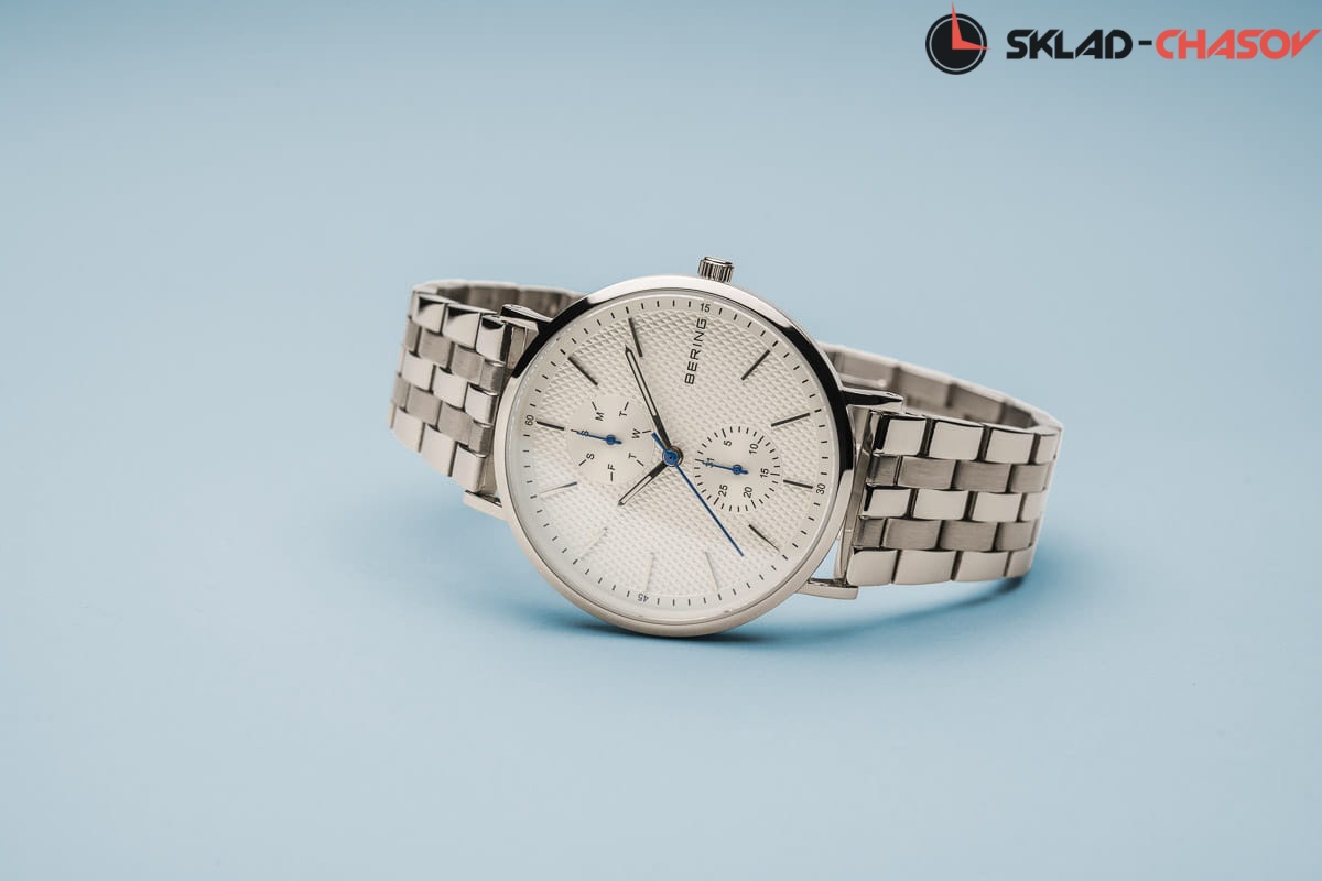 Серебристый циферблат с гильошированием.