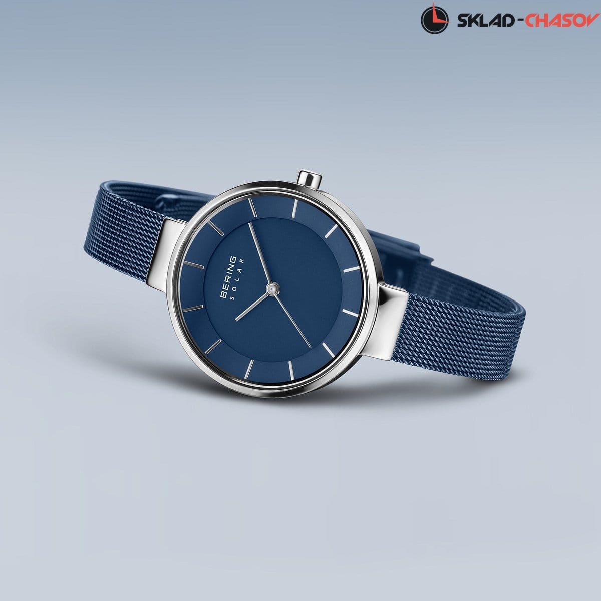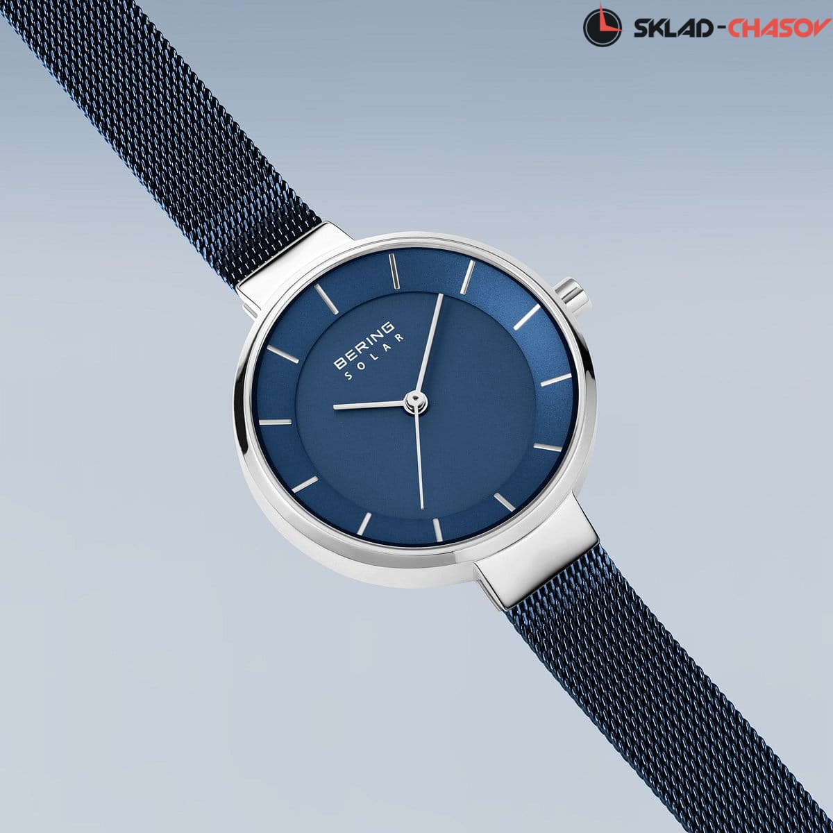 Женские часы на солнечной батарее. Запас хода при полной зарядке 6-12 месяцев. Круглый корпус выполнен из полированной нержавеющей стали. Диаметр корпуса составляет 31 мм, толщина 8 мм. Стальной браслет шириной 10 мм выполнен в технике миланского плетения. Раскладная застежка. Устойчивое к возникновению царапин сапфировое стекло. Водостойкость WR 50 (мытье рук, дождь).