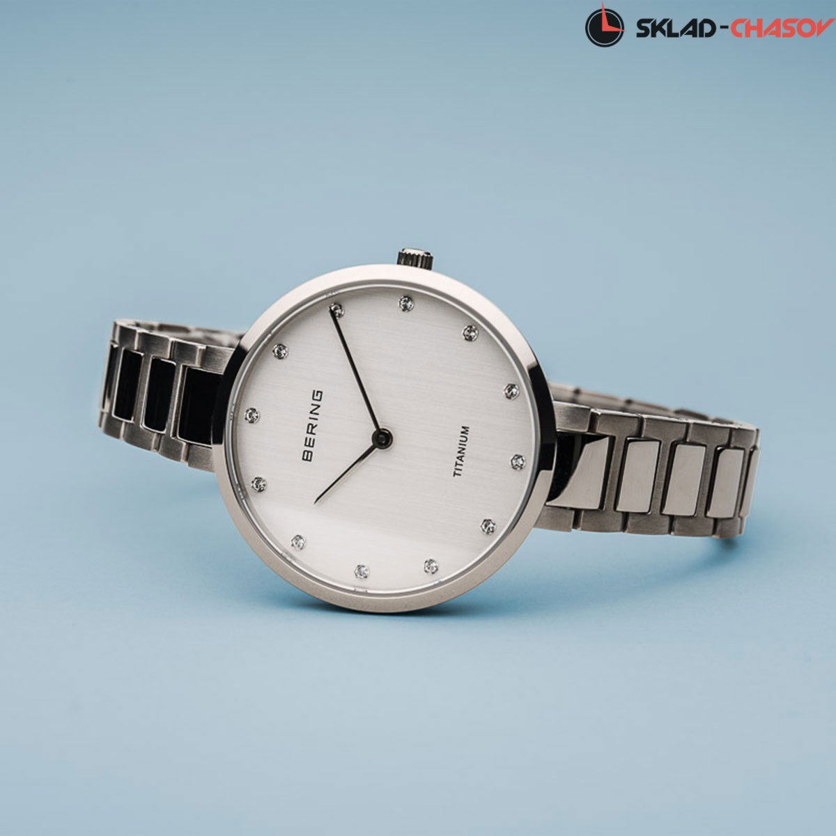 Элегантный дизайн этого стильного аксессуара дополняет нежное мерцание кристаллов на циферблате. Titanium. Женские классические часы с круглым титановым корпусом. Браслет с тройной раскладывающейся застежкой из титана с покрытием.