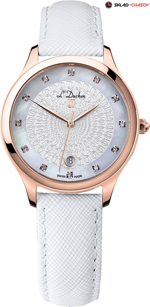 • Циферблат из перламутра, центральная часть с гильошированием, инкрустация искусственных кристаллов в качестве часовых индексов.