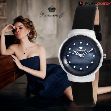 Циферблат: цвет - черный, фигурная чеканка, натуральный перламутр, кристаллы Swarovski
