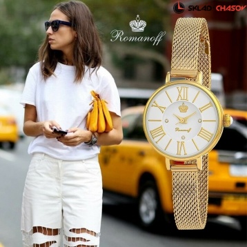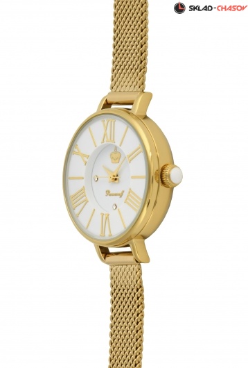 Циферблат: цвет - белый, накладные золотые римские цифры и индексы