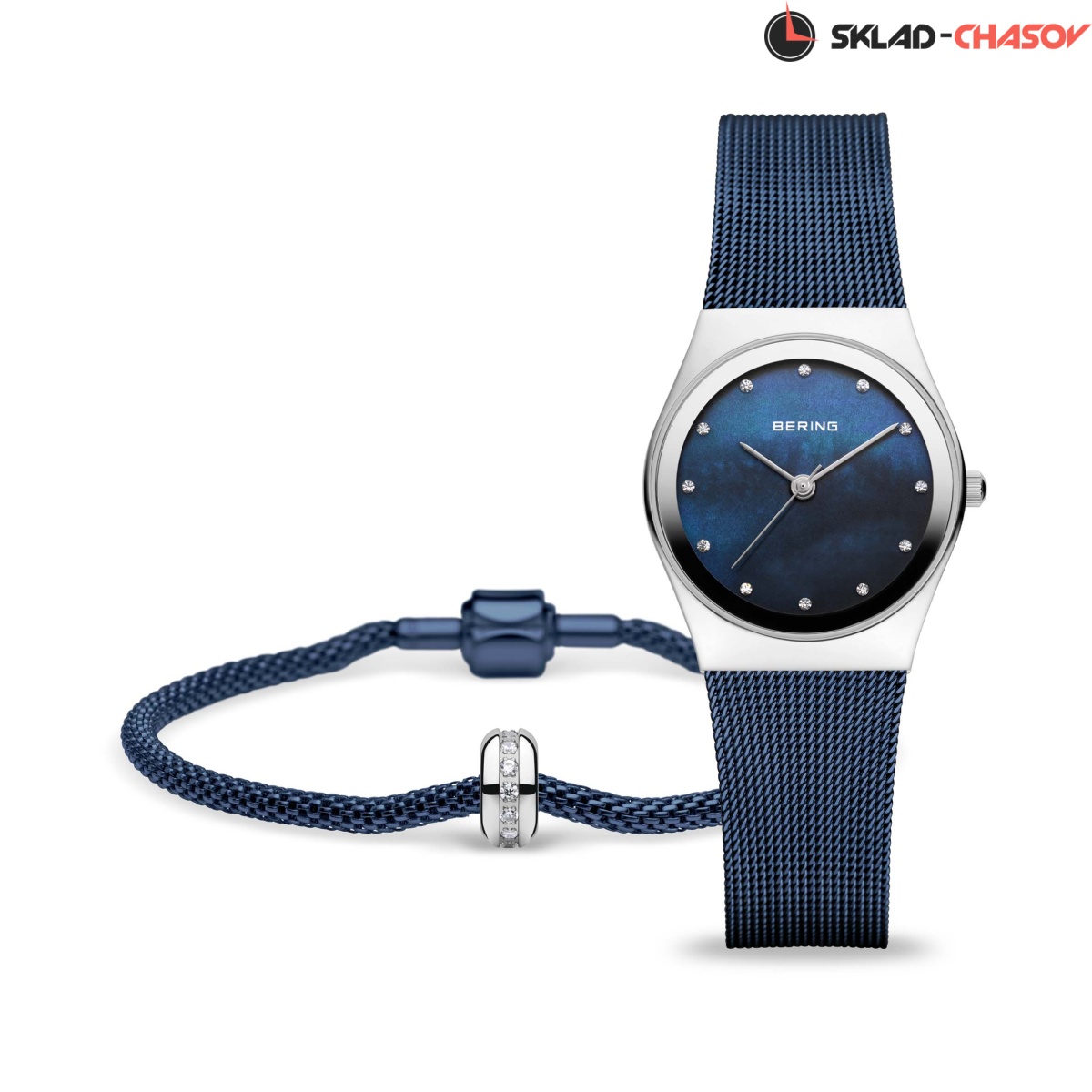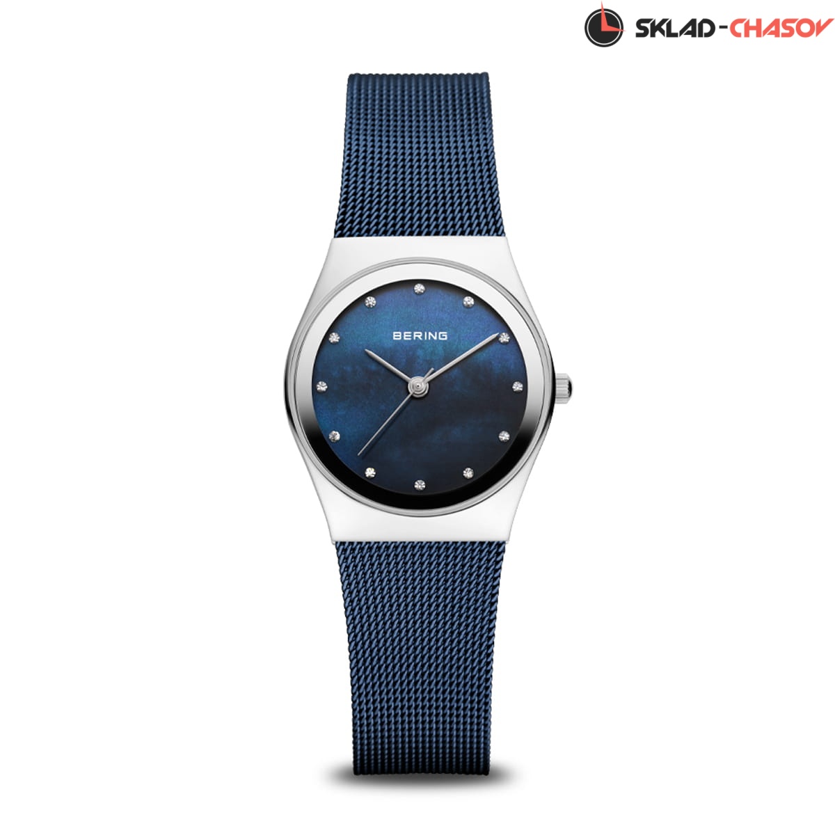 Синий перламутровый циферблат с кристалами SWAROVSKI.