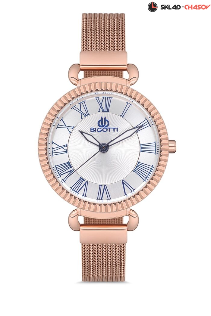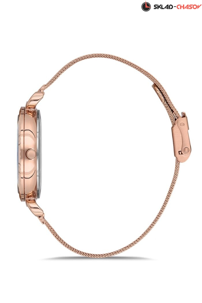 Утонченные женские часы из коллекции Napoli. Корпус из латуни с IP-покрытием. Циферблат выполнен по технологии Sunray (солнечный луч). Риски в виде римских цифр. Часовая и минутная стрелки с люминесцентным покрытием. Браслет миланского плетения с регулируемой застежкой. Размер корпуса 34