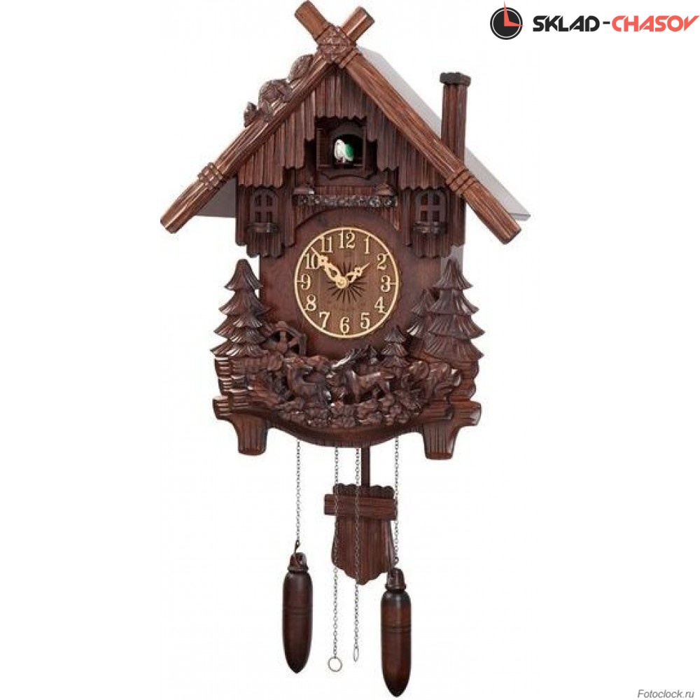 часы с кукушкой с фотоэлементом, деревянный циферблат, арабские цифры