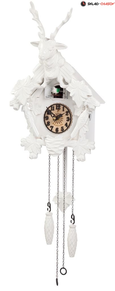 Настенные часы с кукушкой Феникс . Модель Р578. Натуральное дерево белого цвета. Ручная работа. Автоматическое отключение боя с 23 до 7 часов. Деревянные стрелки и циферблат с арабскими цифрами