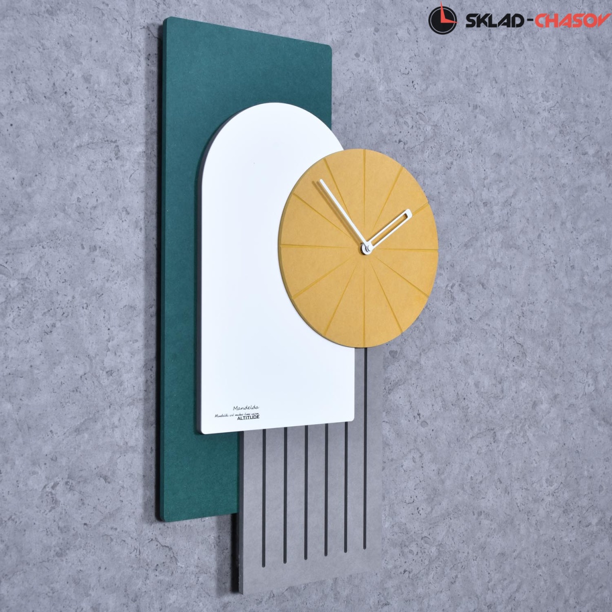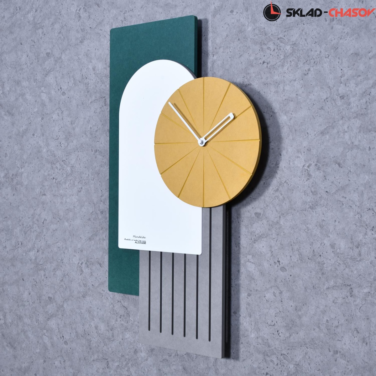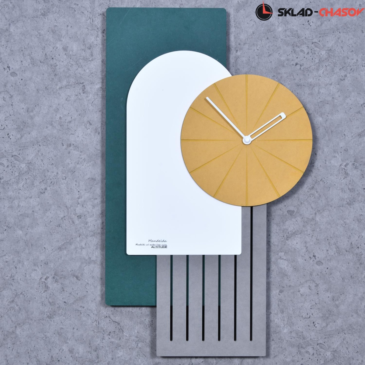 Настенные интерьерные часы от немецкого дизайнера Фридриха Кельна. Необычный дизайн украшает пространство стильного загородного дома или современной роскошной квартиры. "Лучше дома только дом" - вот идея создания. Изготовлено из мдф 3 цветов, отделяют дизайн стрелок с метками времени, часы с кварцевым механизмом, цифры показывают время.