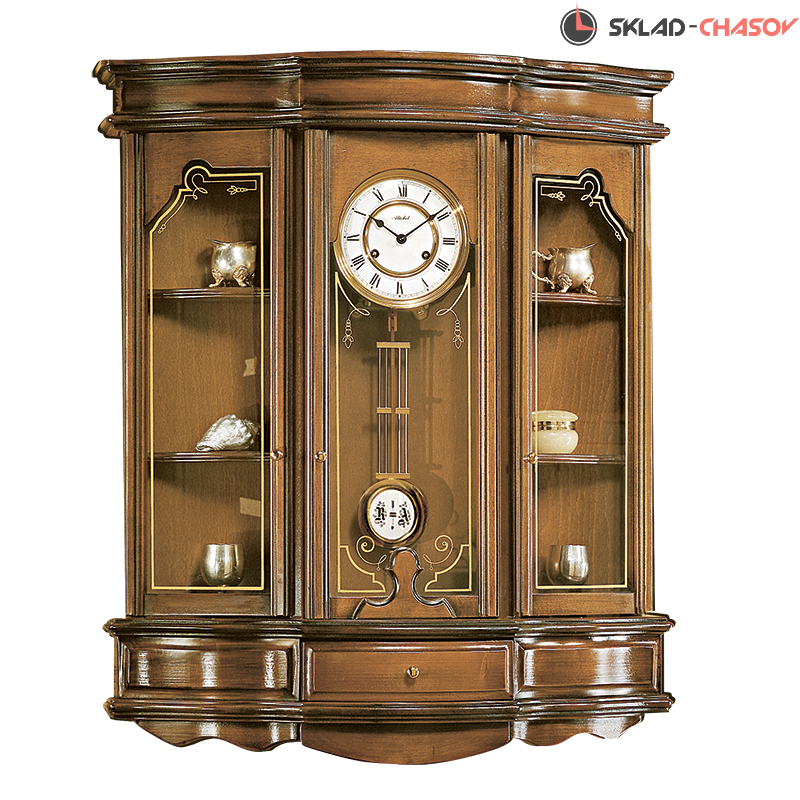 Настенный корпус часов изготовлен из французского бука и американского топилера. Есть 4 полки и ящик