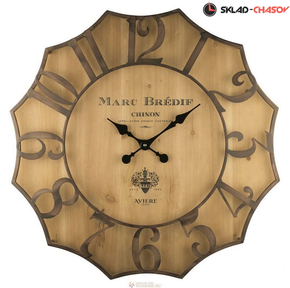 Настенные часы. Корпус изготовлен из МДФ. Циферблат отделан под «антик». Оцифровка из металла. Кварцевый механизм Young Town с плавным ходом.