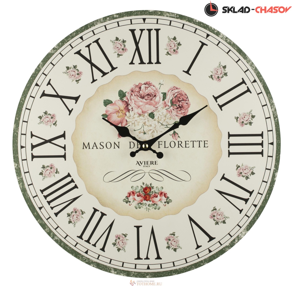 Настенные часы. Корпус изготовлен из МДФ. Циферблат отделан под «антик». Кварцевый механизм Young Town с плавным ходом.