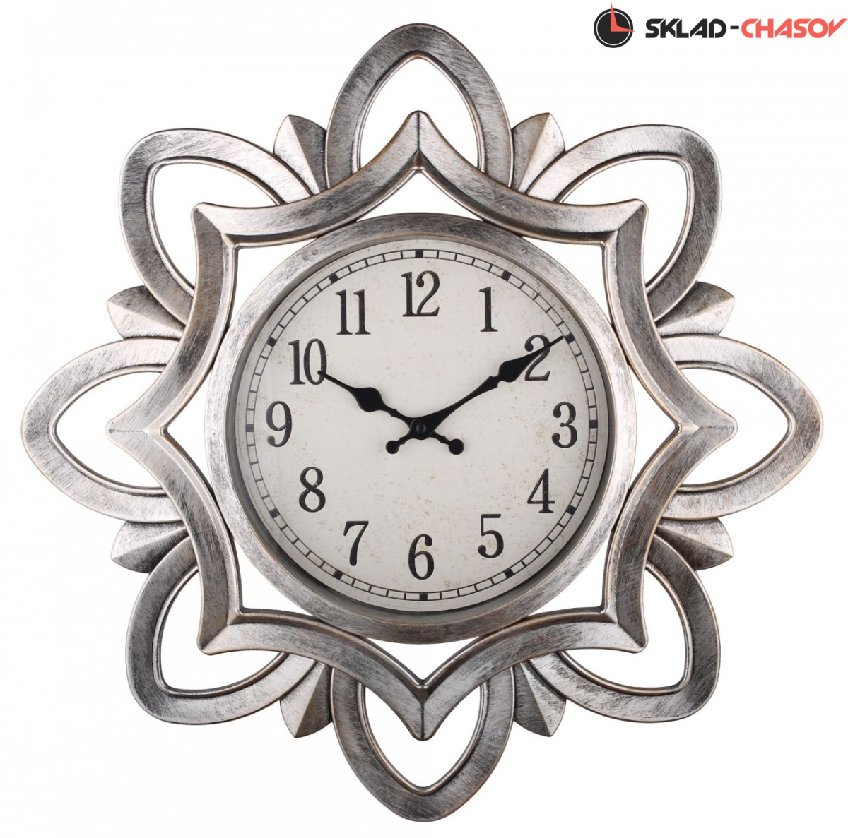 Кварцевые настенные часы в пластиковом корпусе. Циферблат закрыт стеклом.