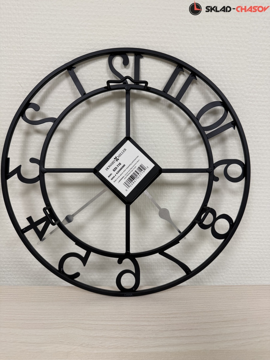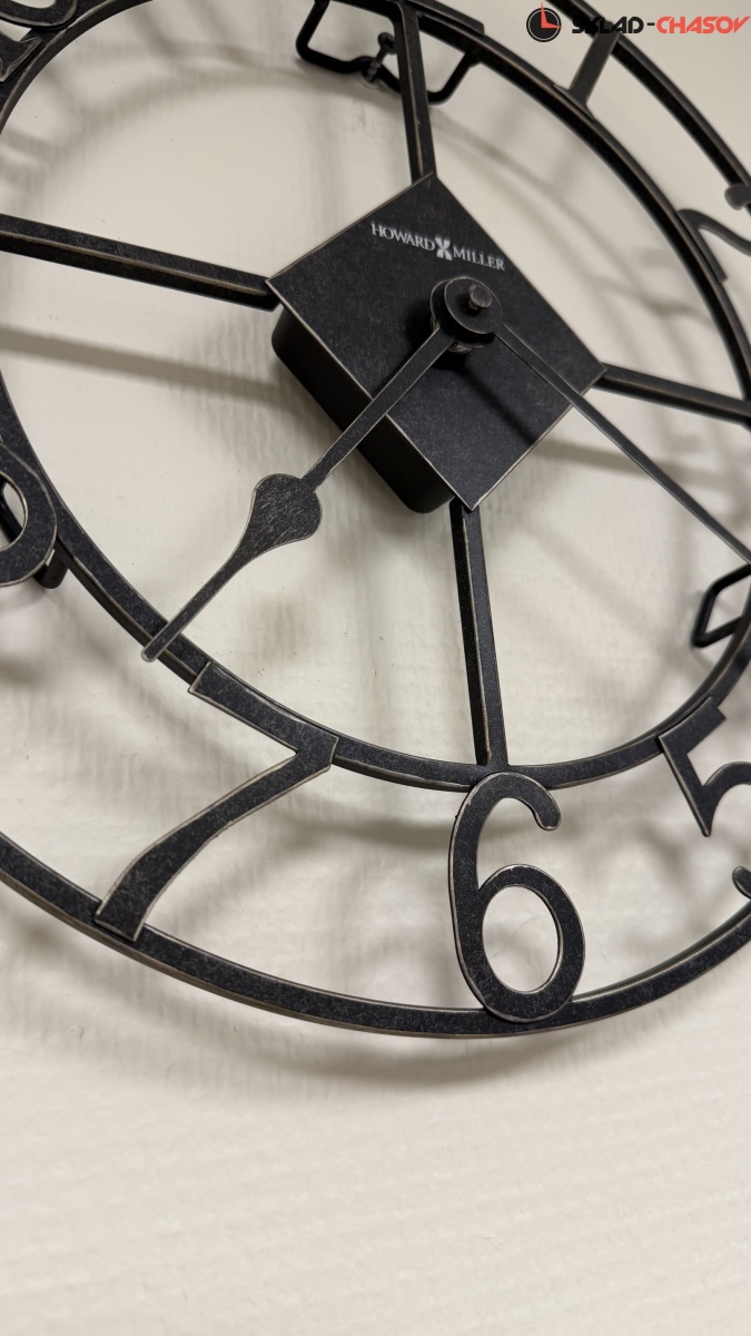 Корпус этих небольших настенных часов выполнен из металла и тонирован в угольном цвете с серебряными акцентами. Арабская оцифровка. Пикообразные металлические стрелки также тонированы в угольном цвете с серебряными акцентами.