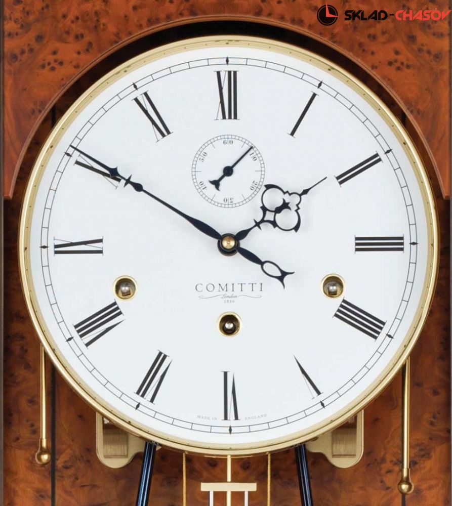 Настенные часы в стиле регентства Break arch с механизмом вестминстерских курантов. Корпус из полированного вручную тиса с тисовым шпоном и инкрустированными "эбонизированными" шнурами.