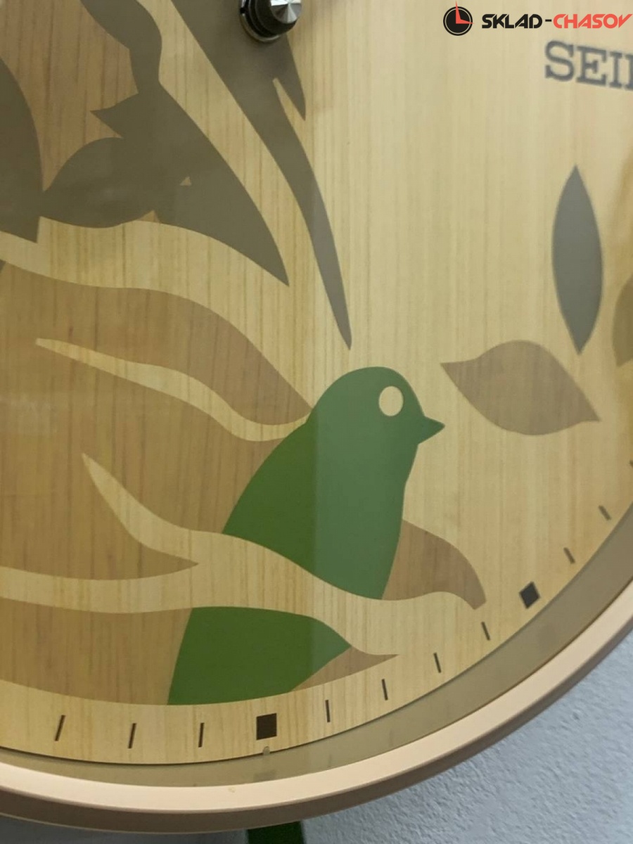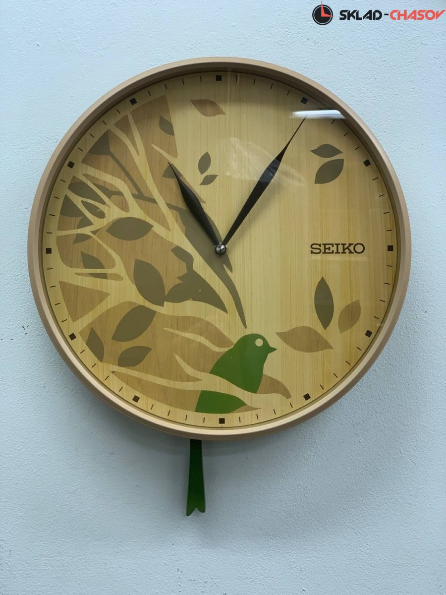 Настенные часы Seiko QXC243Z с маятником в виде хвоста птицы.