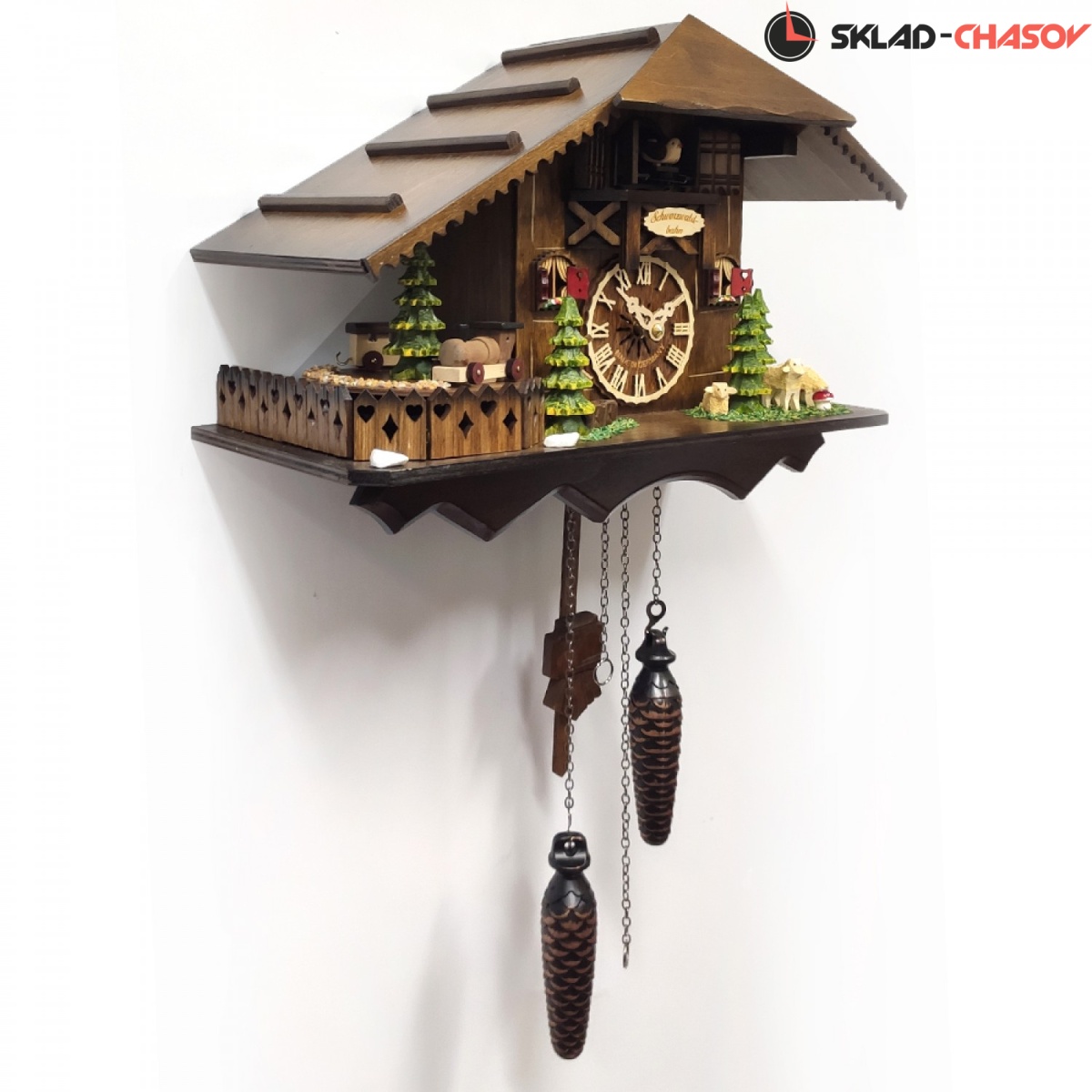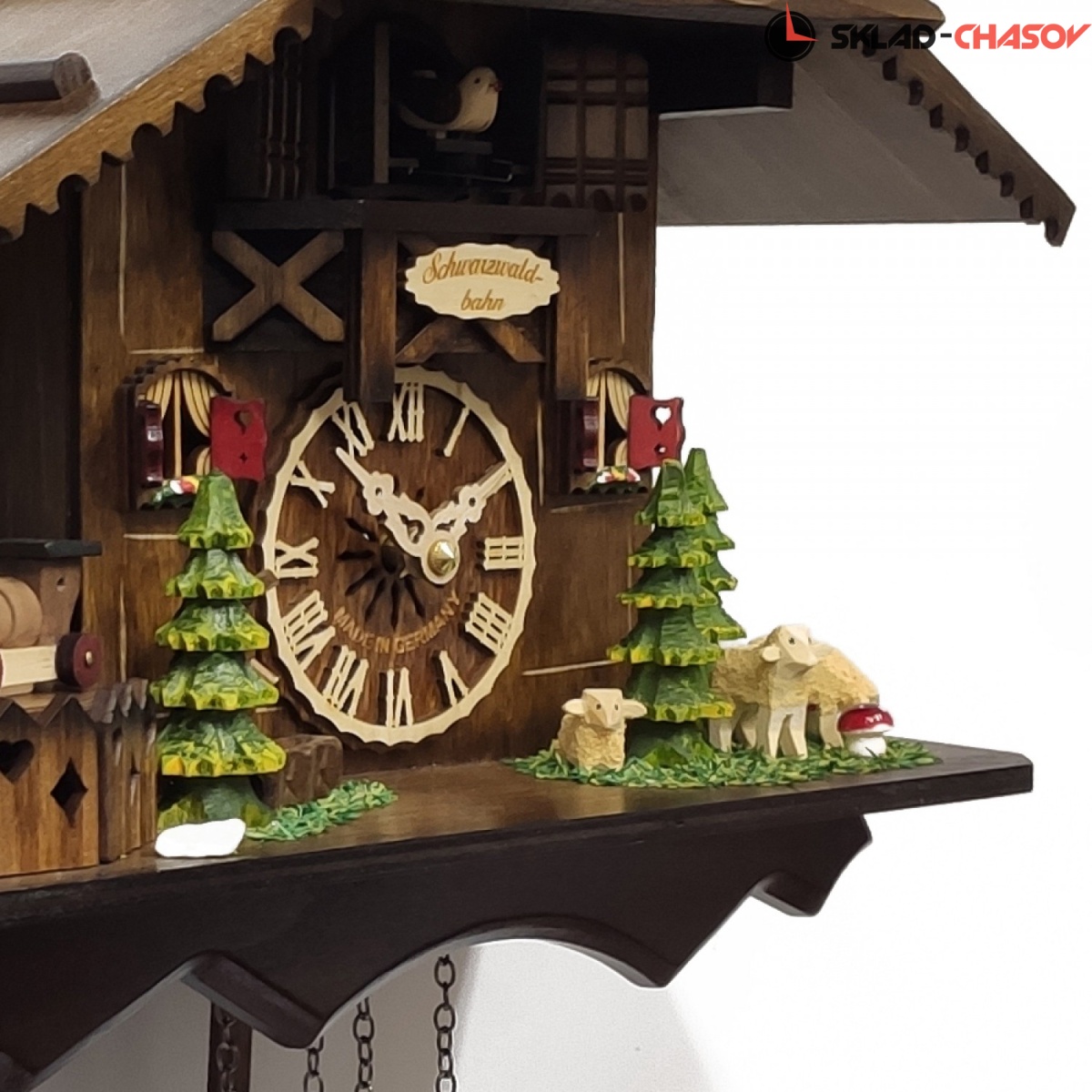 - Оригинальность этих настенных часов с кукушкой SARS подчеркивают вращающиеся при срабатывании кукушки фигурки- паровочики крутятся по кругу, а также стоят овечки без движения.