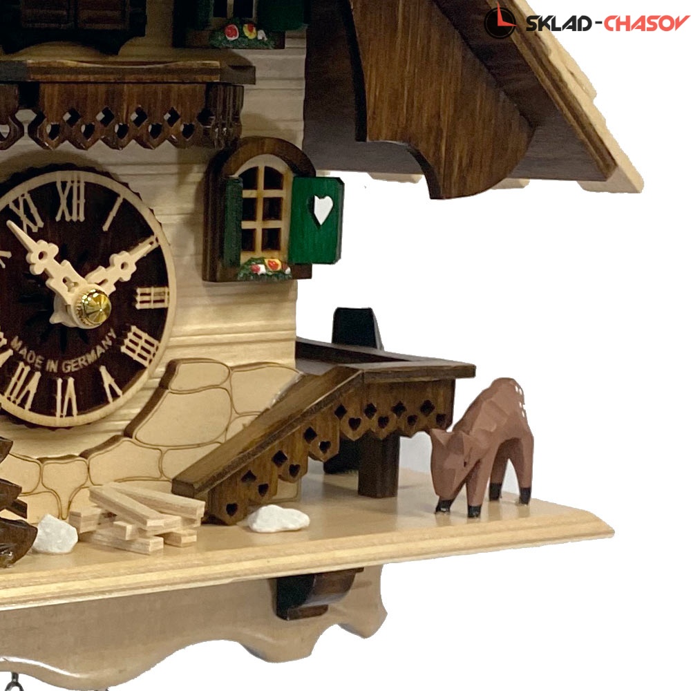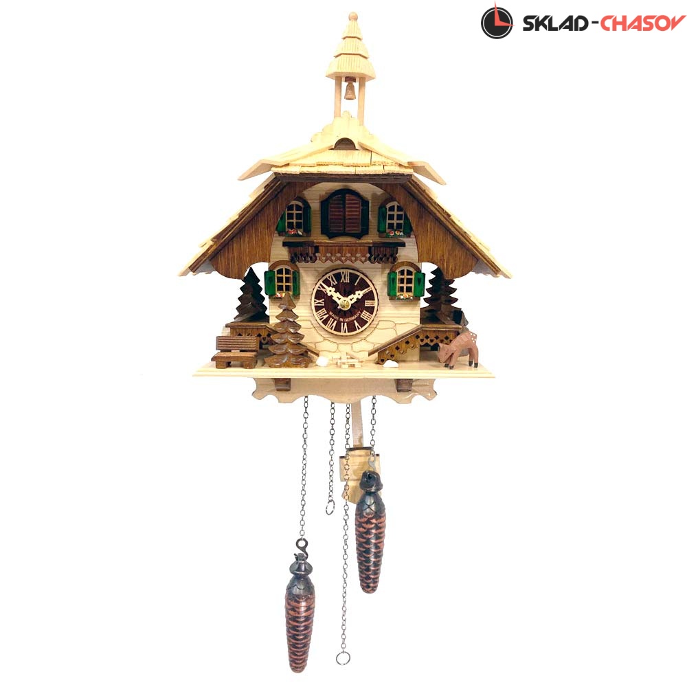 Часы с кукушкой SARS 0444/7-8M (Германия) имеют надежный немецкий механизм и безупречное качество сборки и производства. Ручная роспись часов придает некий домашний стиль. Часы с изображением на фасаде елочек, скамейки и олененка.
