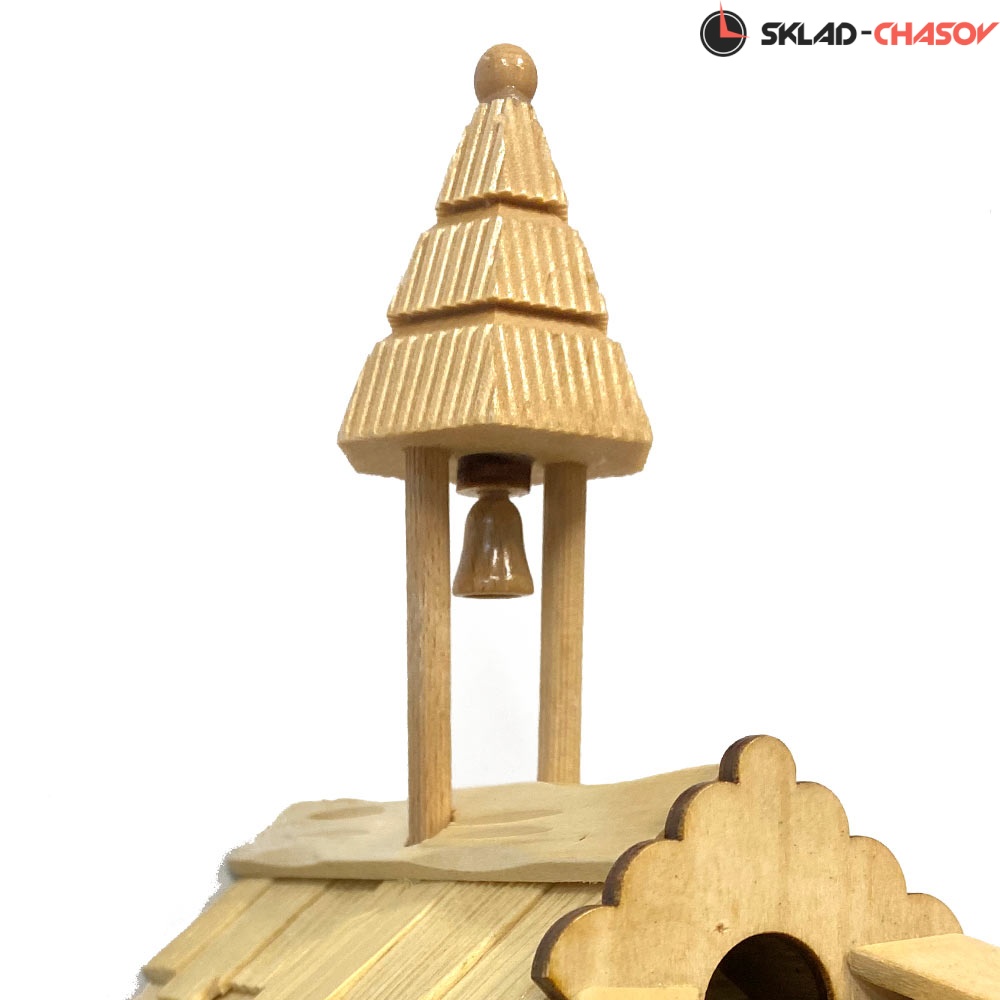 Кукушка срабатывает каждый час и играет мелодия. Механизм: кварцевый. Мелодии-12 шт. Циферблат: 6 см. Размер: 32х24х14 см, высота с учетом маятника 45 см,а с учетом шишек 63 см. Ночной режим. Корпус: дерево. Цвет: светлый орех.Гарантия: 1 год.