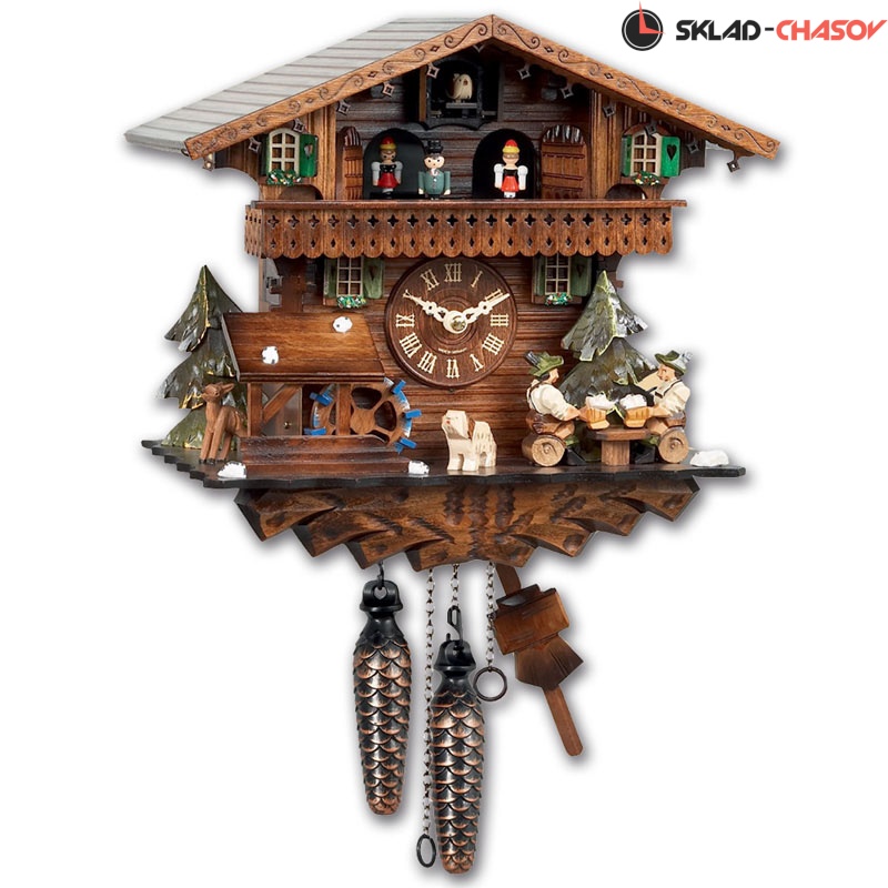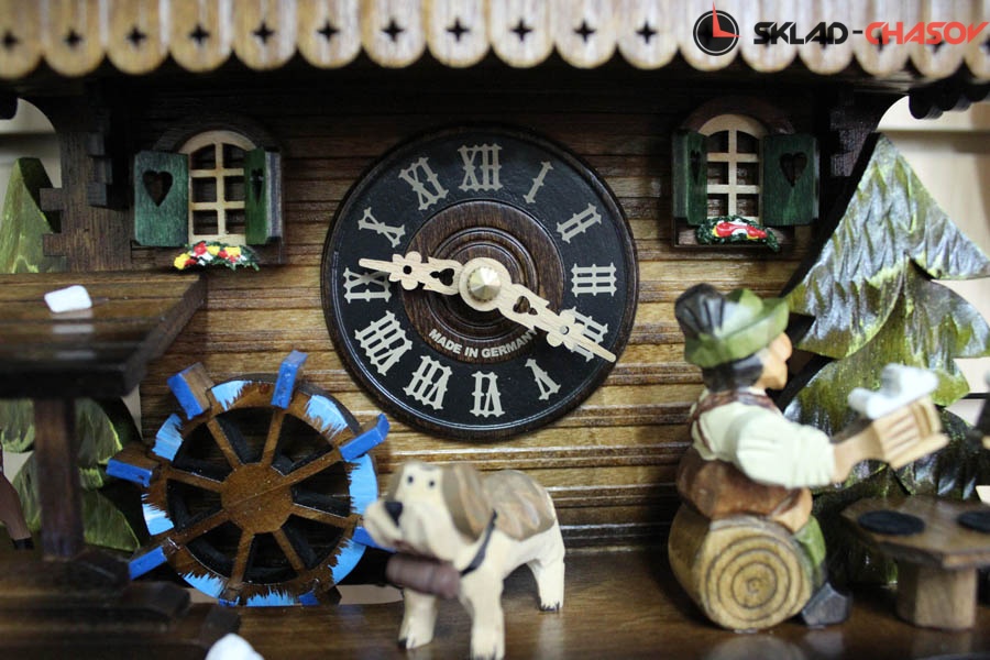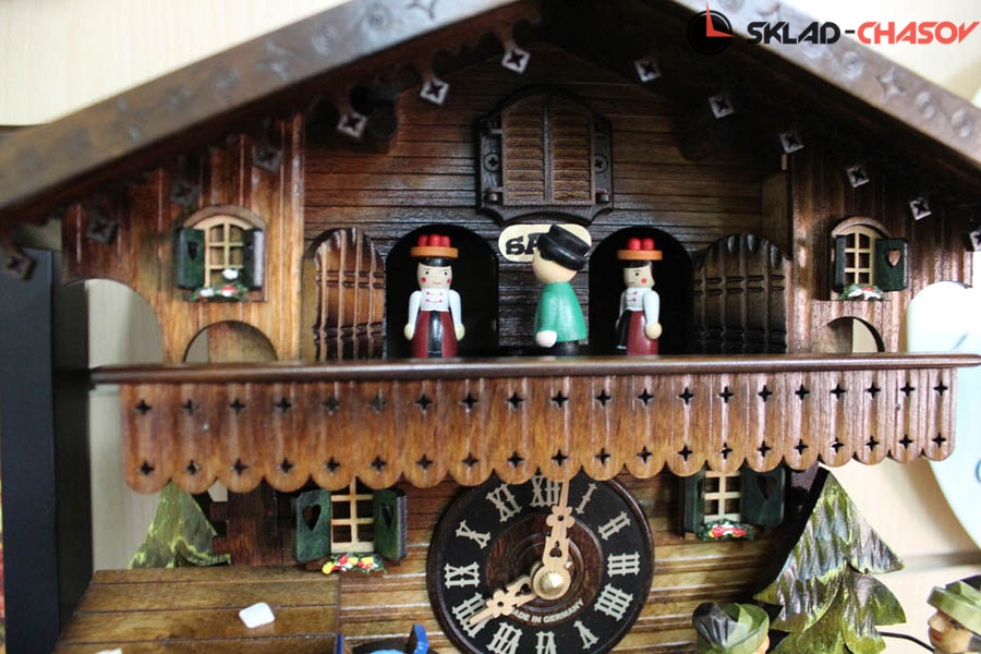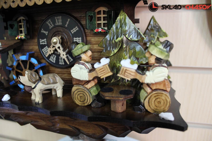 Оригинальность этих настенных часов с кукушкой SARS подчеркивают вращающиеся при срабатывании кукушки фигурки - двигаются фигурки сверху, водяное колесо (слева) и мужики поднимают и опускают кружки пива.