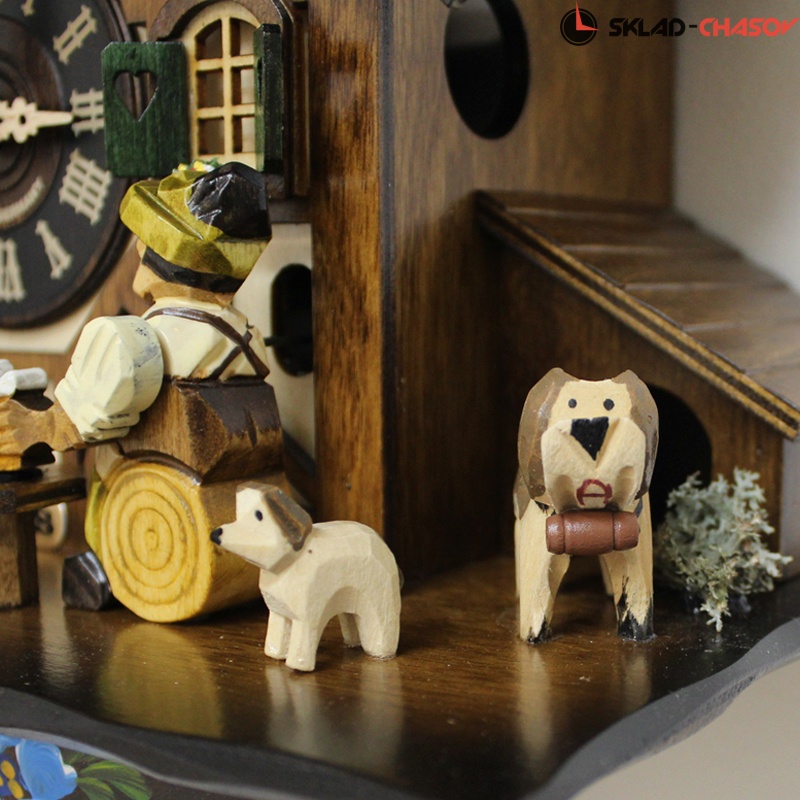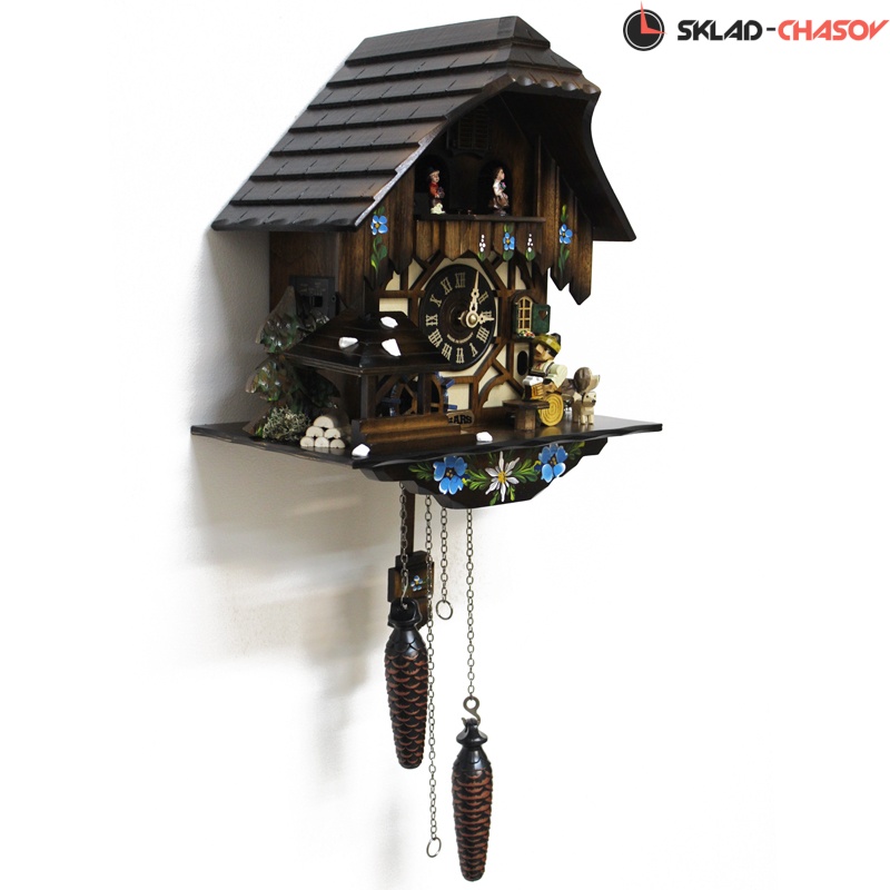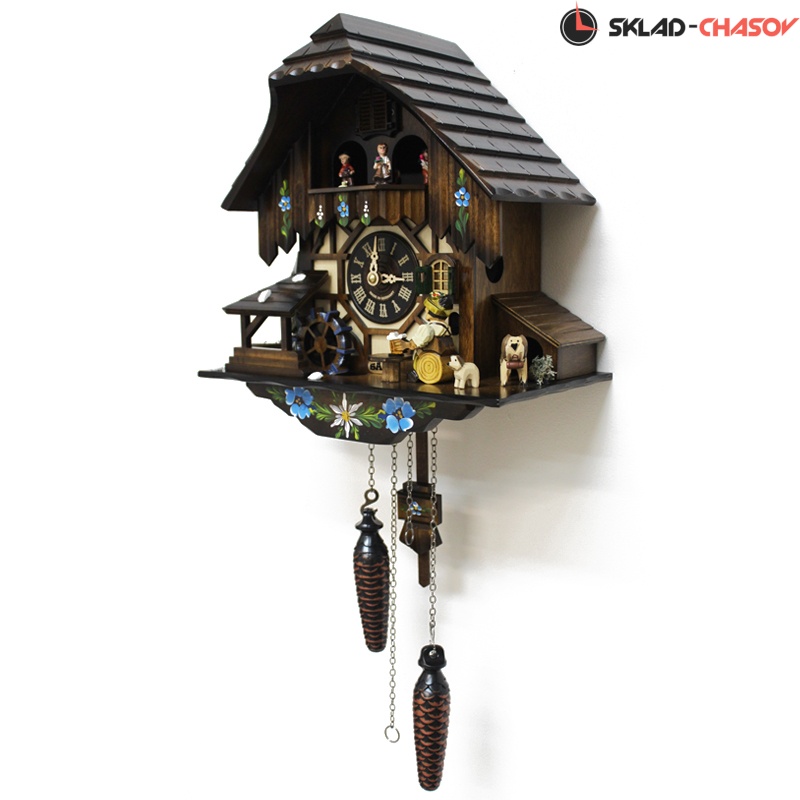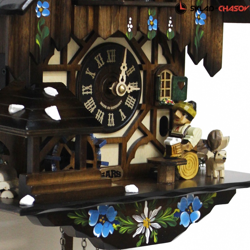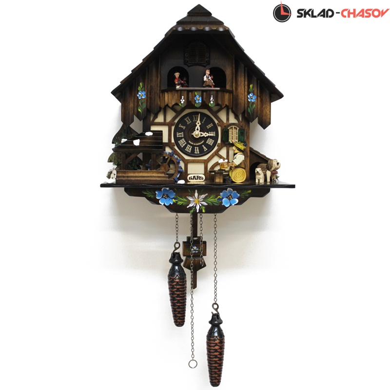 - Оригинальность этих настенных часов с кукушкой SARS подчеркивают вращающиеся при срабатывании кукушки фигурки- двигаются фигурки сверху, водяное колесо(слева) и мужик поднимает и опускают кружку пива.