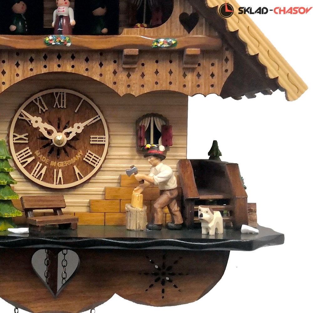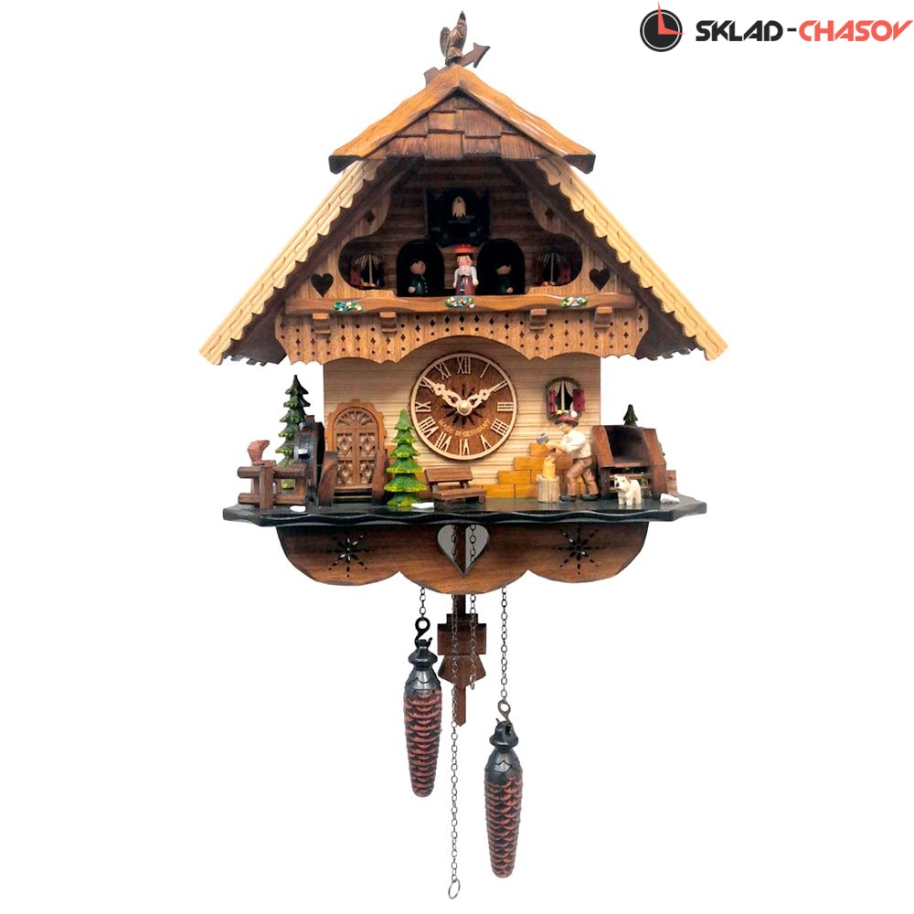 Часы с кукушкой SARS 0484-8MT (Германия) имеют надежный немецкий механизм и безупречное качество сборки и производства. Ручная роспись часов придает некий домашний стиль. Часы с изображением на фасаде елочек, скамейки и движущихся дровосека и водяной мельницы.