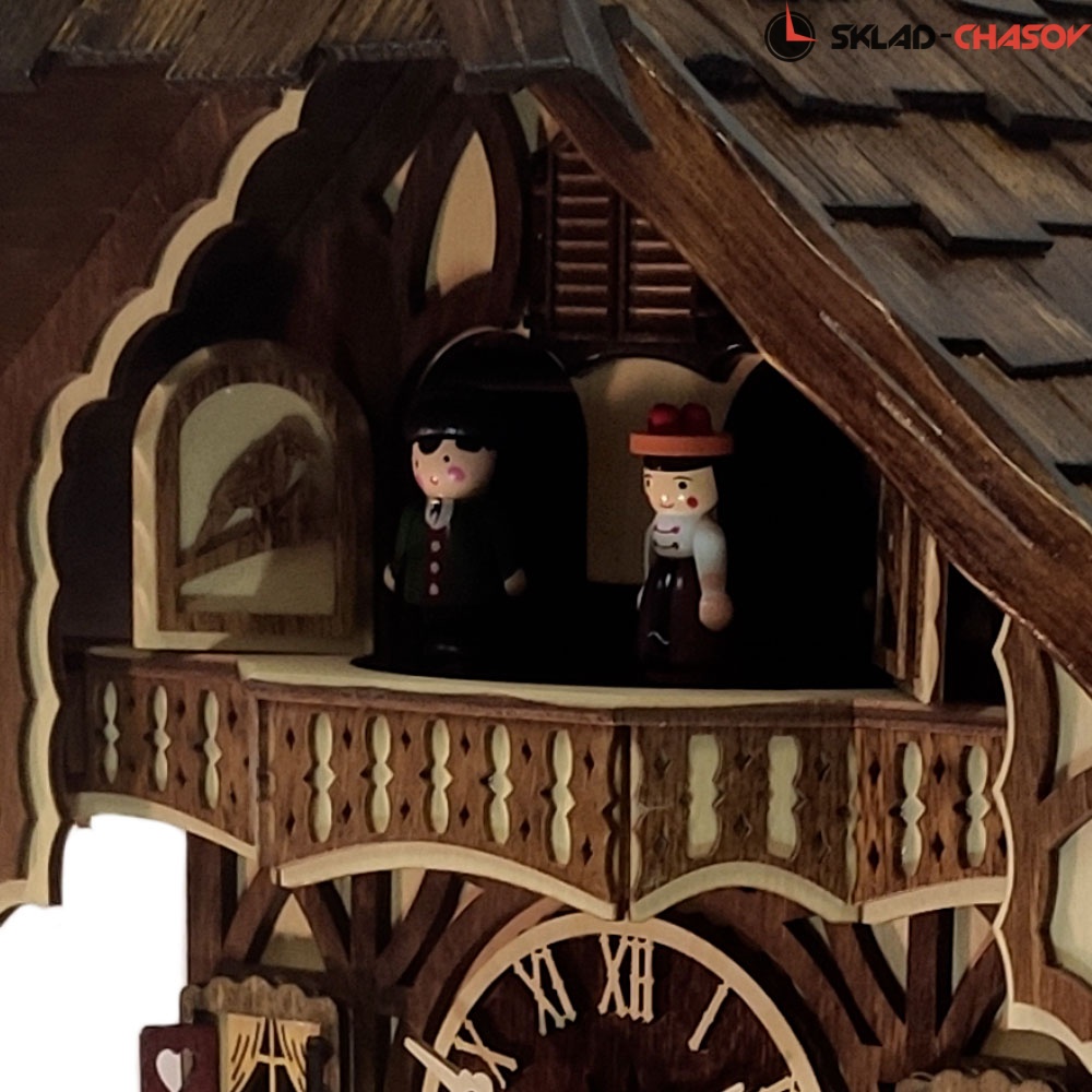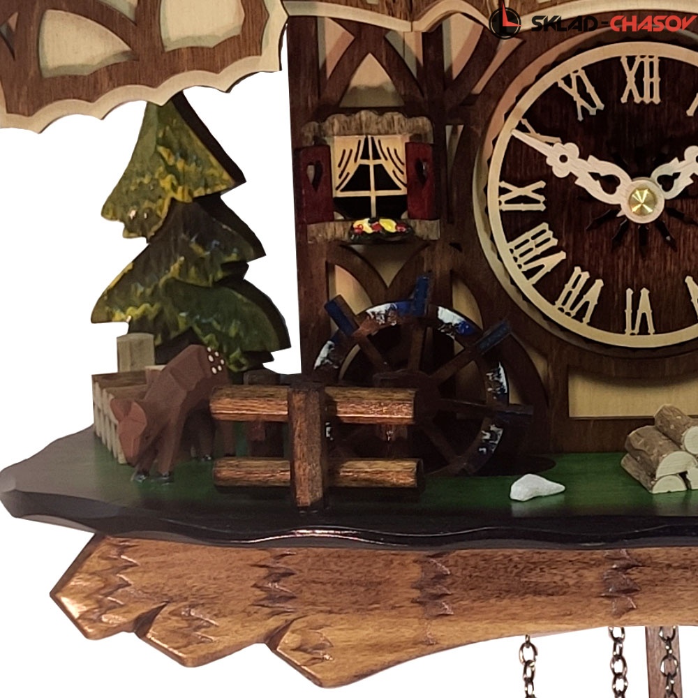 Часы с кукушкой SARS 0491-8MT (Германия) имеют надежный немецкий механизм и безупречное качество сборки и производства. Ручная роспись часов придает некий домашний стиль. Часы с изображением на фасаде елочек, скамейки и движущихся дровосека и водяной мельницы.