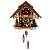 Кукушка срабатывает каждый час и играет мелодия. 12 разных мелодий. Подвижные фигурки: сверху, колесо и мужики за столом. Механизм: кварцевый. Размер: 34х30х15 cм, высота 34 см. Ночной режим. Корпус: дерево. Цвет: темный орех. Батарейки: тип С -3 шт в комплект не входят.