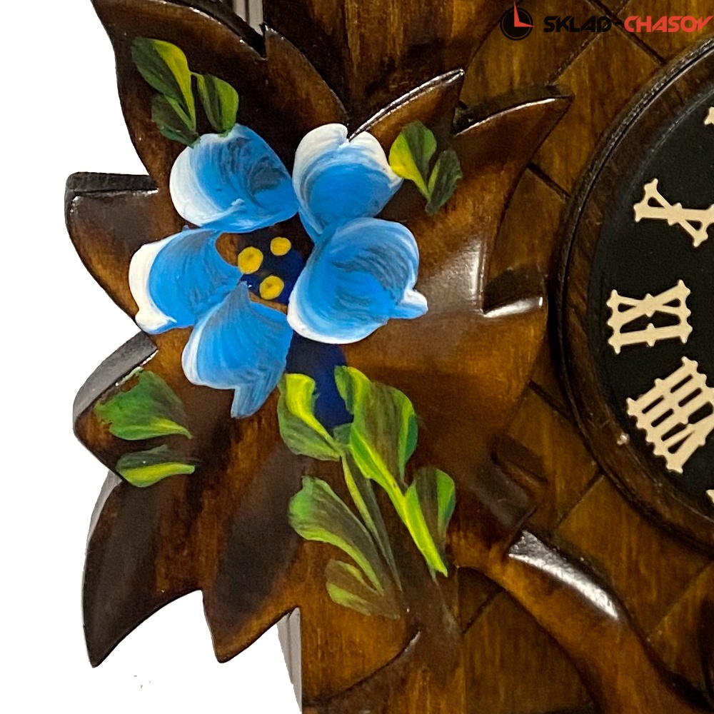 Часы с кукушкой SARS 0522/10-8M (Германия) имеют надежный немецкий механизм и безупречное качество сборки и производства. Фасад часов украшает птица наверху,а по бокам и внизу украшают композиции из цветов.