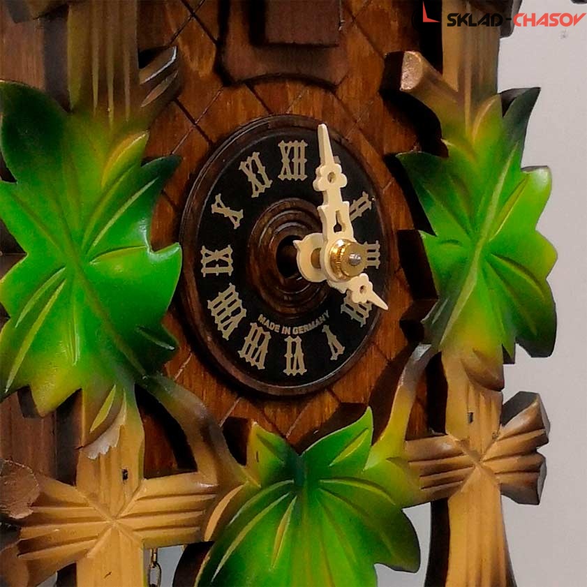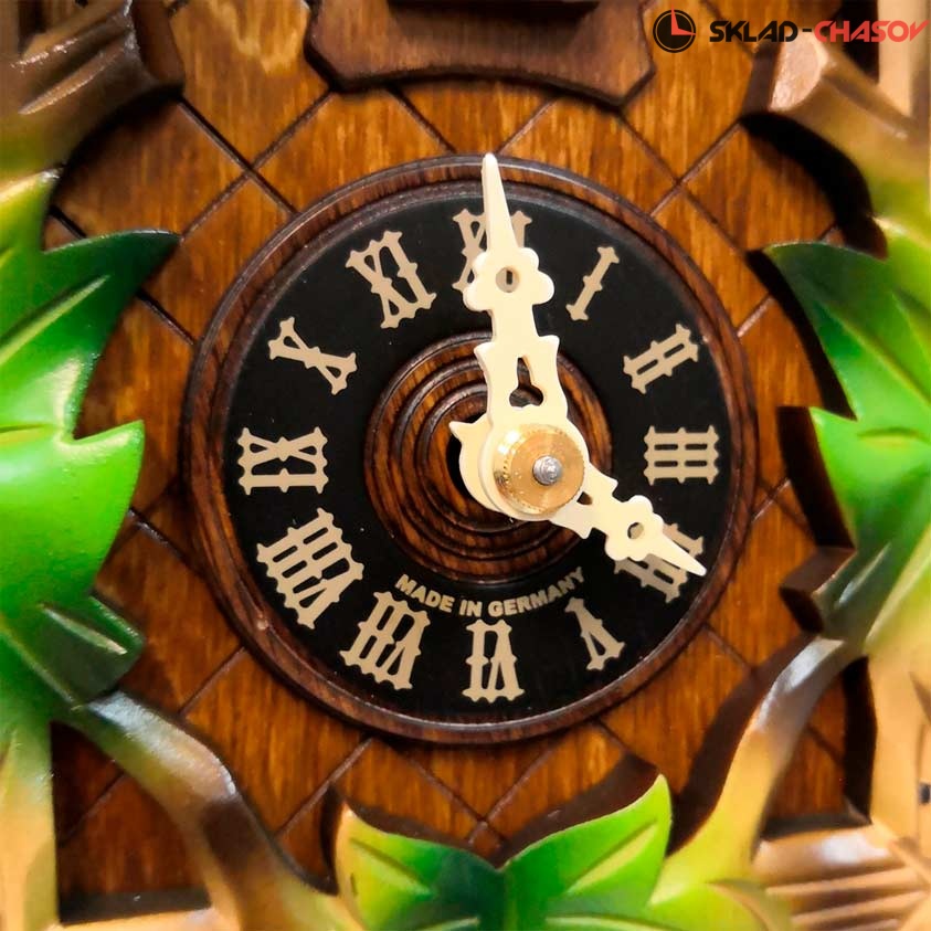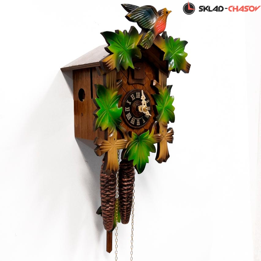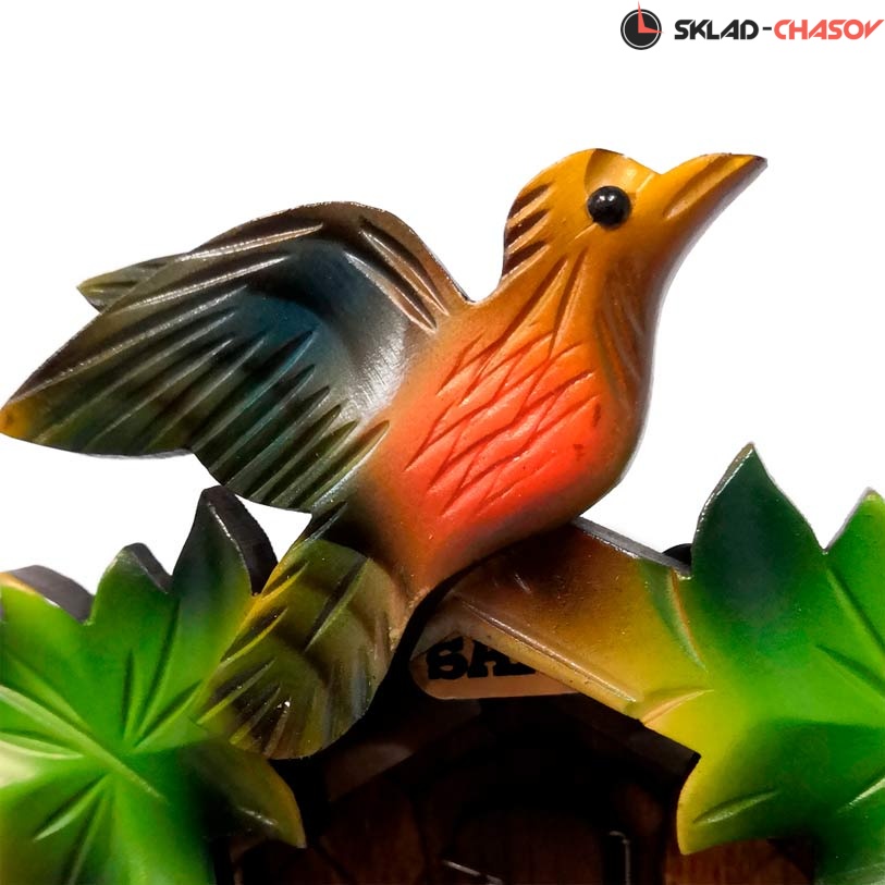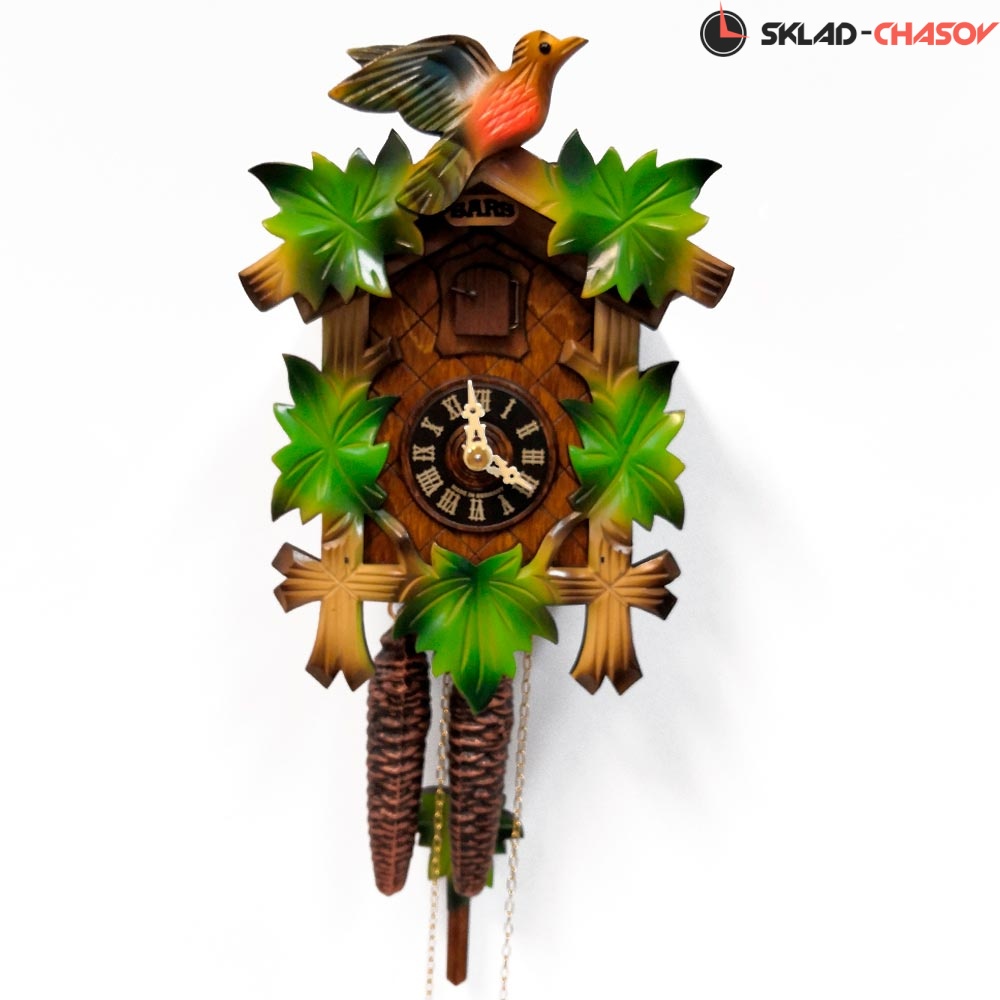 Часы с кукушкой SARS 0522/2-90 (Германия) имеют надежный механический немецкий механизм и безупречное качество сборки и производства. Фасад часов украшает птица сверху, а по бокам зеленые листья. Ручная роспись элементов часов.
