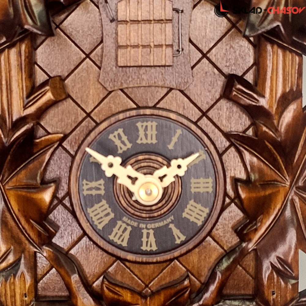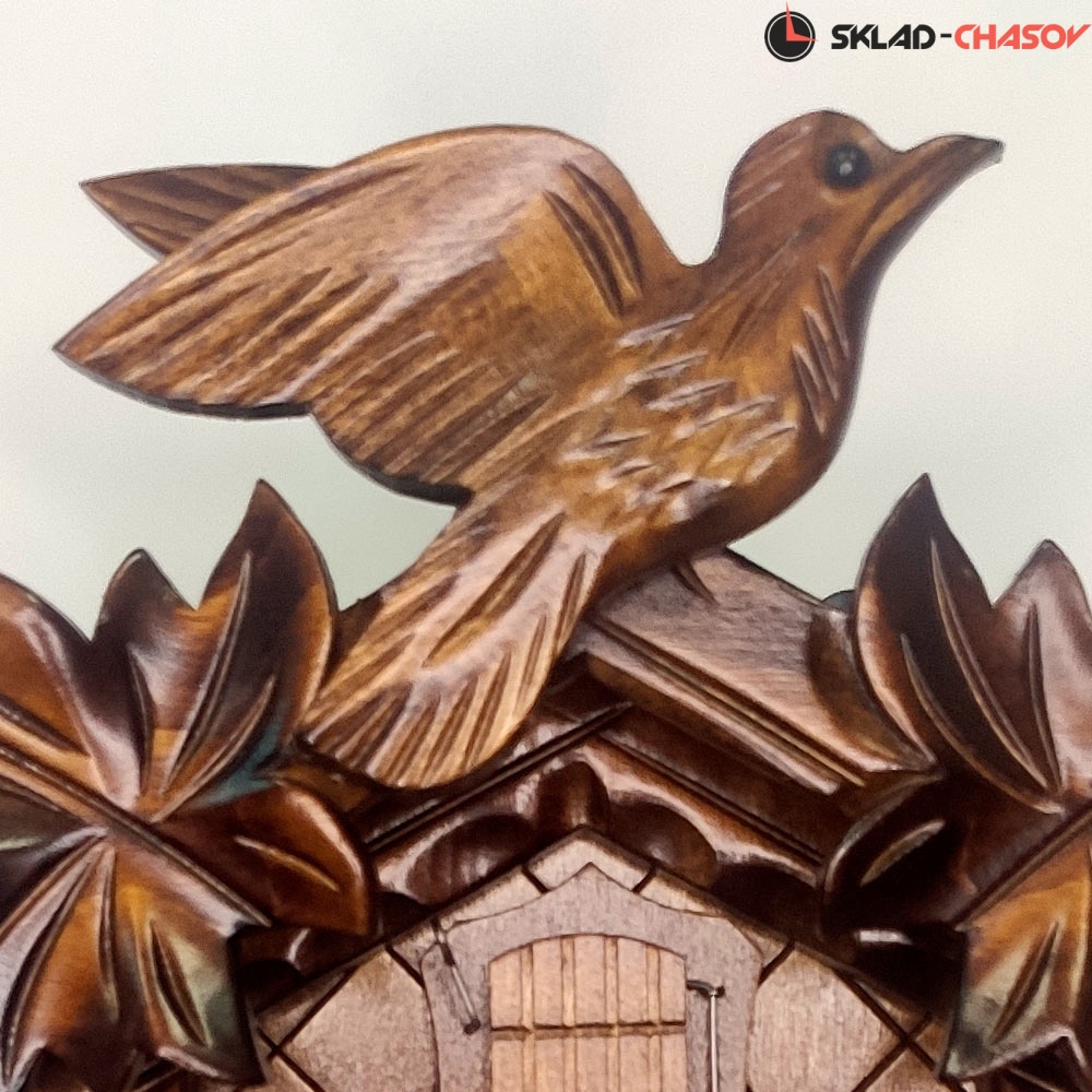 Часы механические с кукушкой SARS 0532-90 (Германия) имеют надежный механический немецкий механизм и безупречное качество сборки и производства. Фасад часов украшает птица сверху, а по бокам листья.