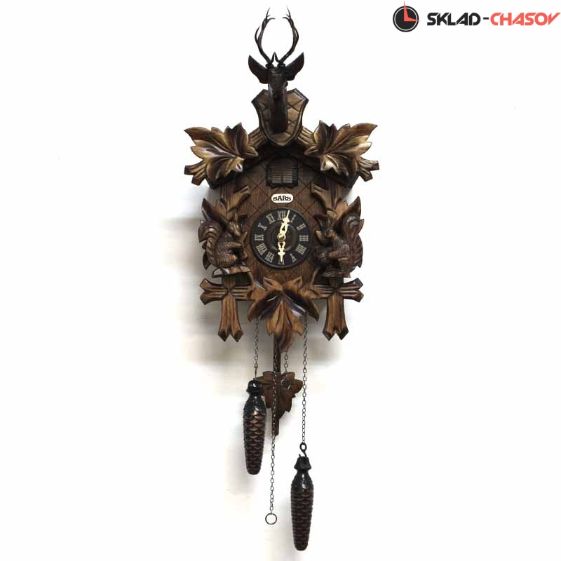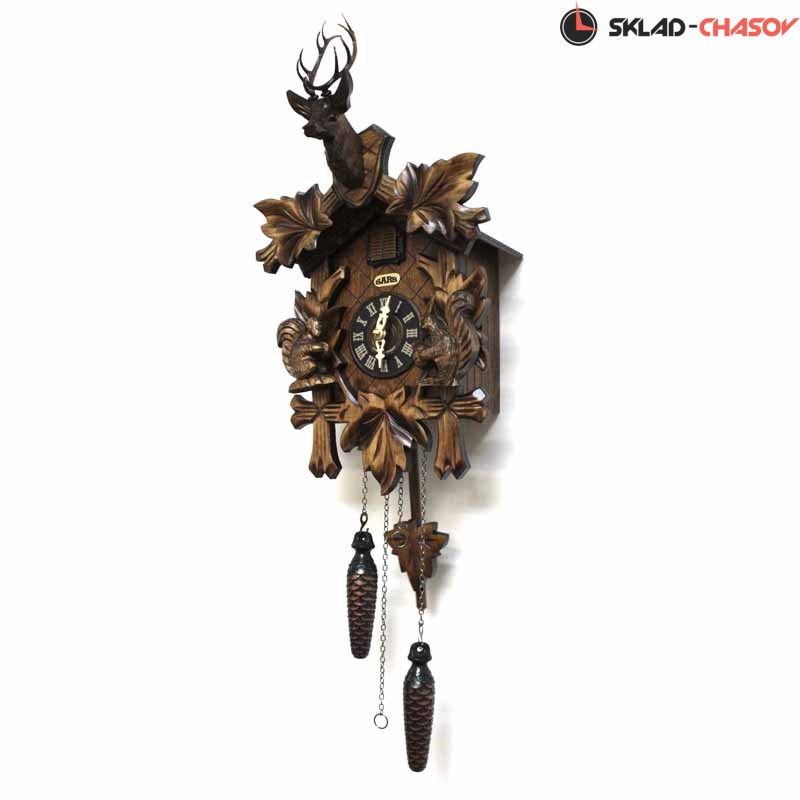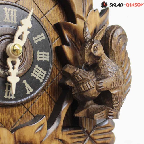 Кукушка срабатывает каждый час и играет мелодия. Механизм: кварцевый (Германия). Размер: высота 31 см. Ночной режим. Корпус: дерево.