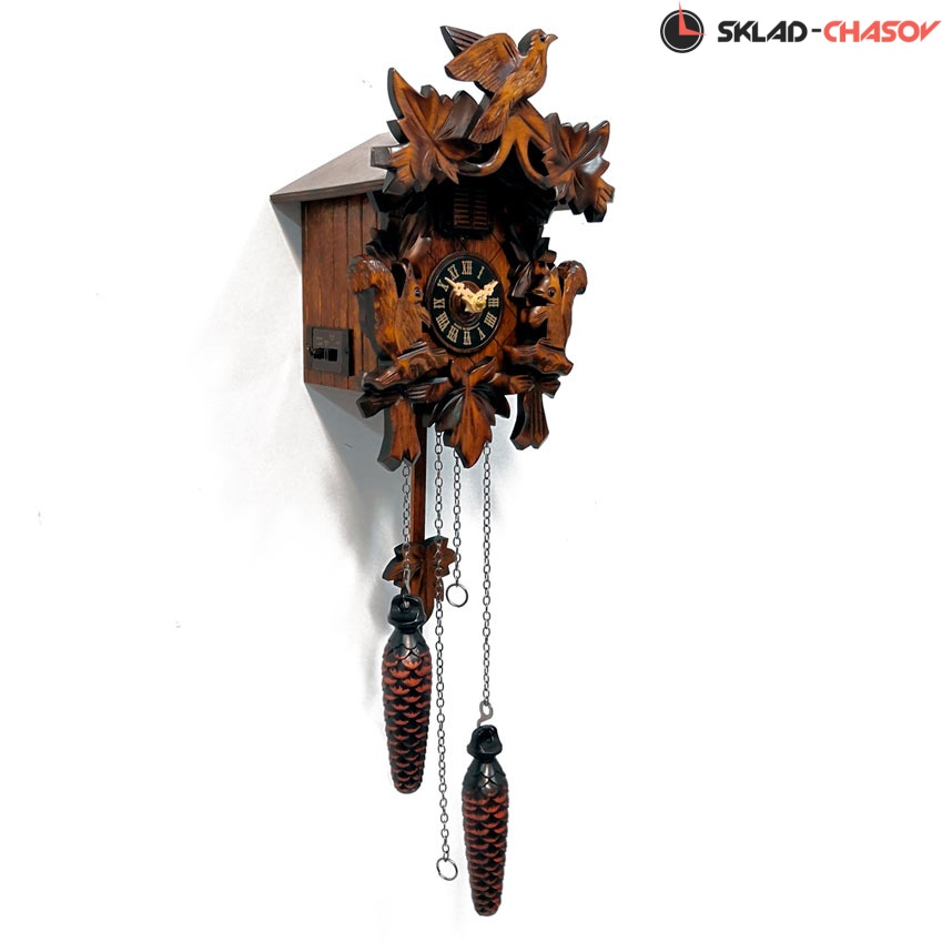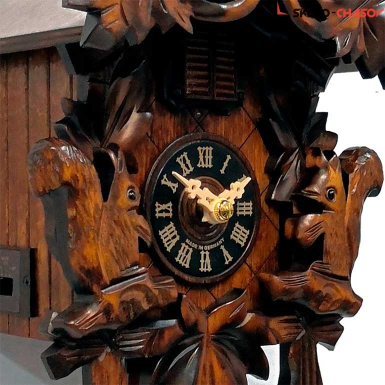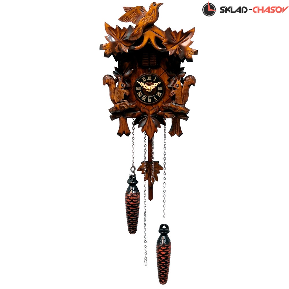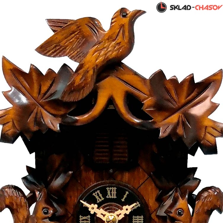 Часы с кукушкой SARS 0622-8M (Германия) имеют надежный немецкий механизм и безупречное качество сборки и производства. Фасад часов украшает птица наверху,а по бокам украшают белки и листья,а снизу лист дерева.