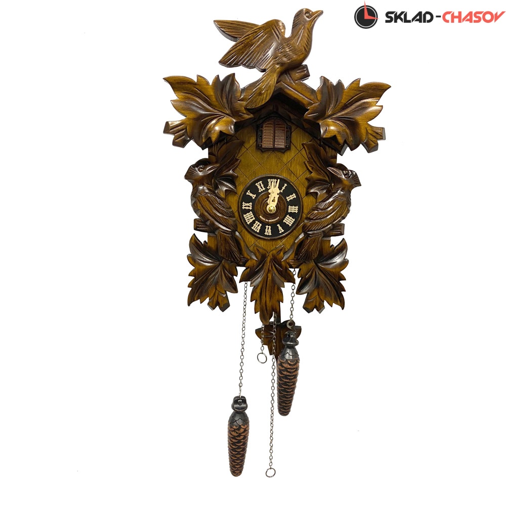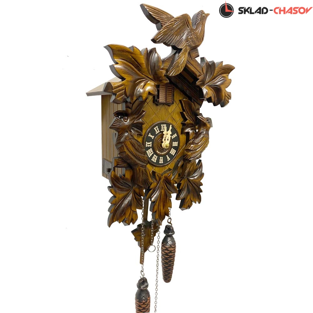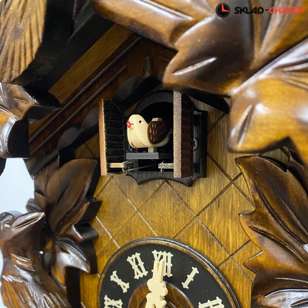 Часы с кукушкой SARS 0632-8M (Германия) имеют надежный немецкий механизм и безупречное качество сборки и производства. Фасад часов украшает птица сверху, а по бокам листья. Ручная роспись элементов часов.