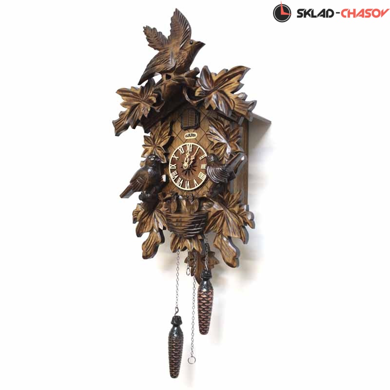 Кукушка срабатывает каждый час. Механизм: кварцевый. Ночной режим. Размер: 45,5*30*17 см. Высота без учета шишек: 45 см Корпус: дерево.