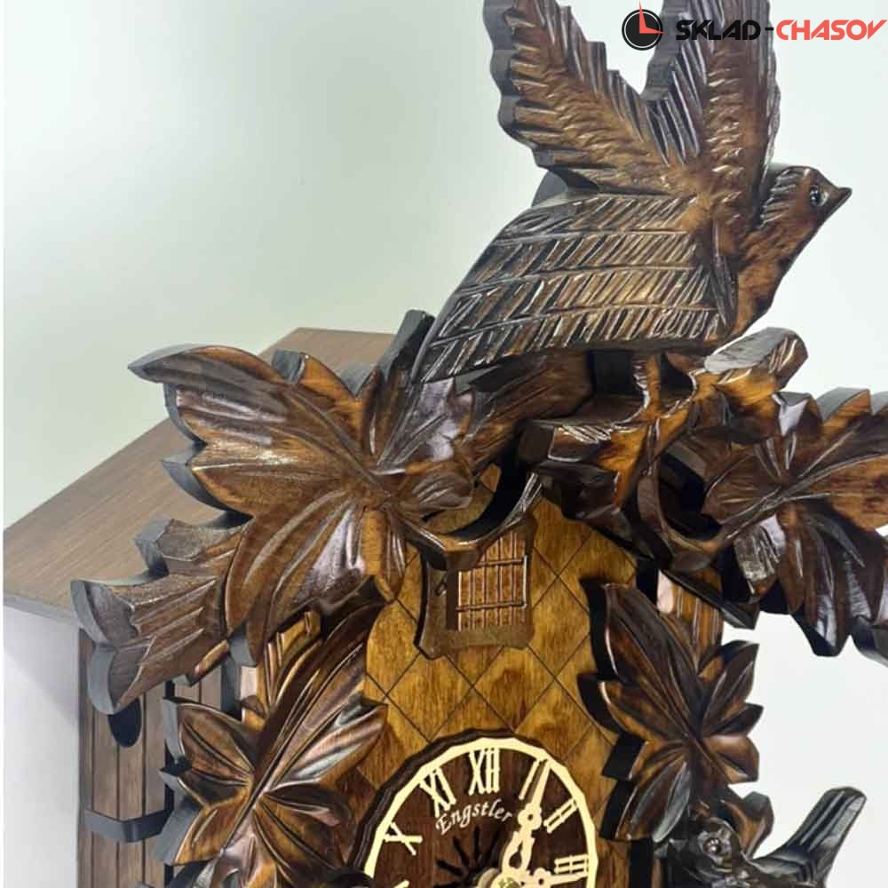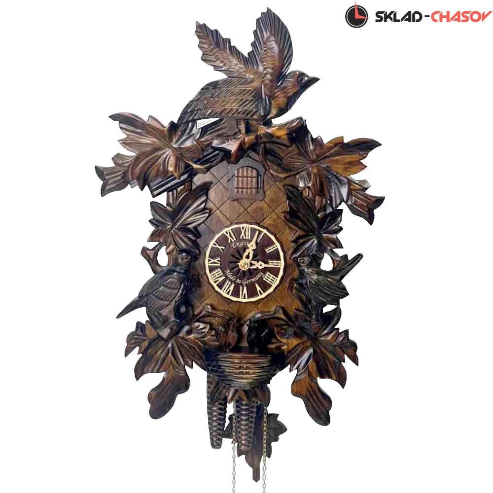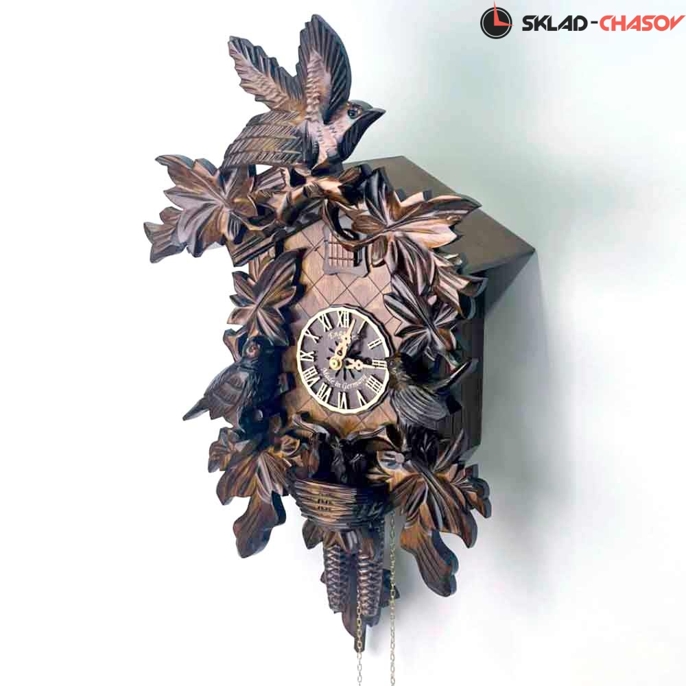 Часы механические с кукушкой SARS 0640-90 (Германия) имеют надежный механический немецкий механизм и безупречное качество сборки и производства. Фасад часов украшают птицы наверху и по бокам. Внизу композиции находится гнездо с птенцами.