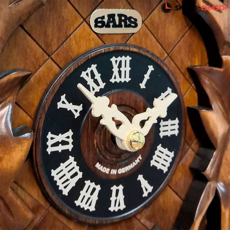Часы с кукушкой SARS 0922-8M (Германия) имеют надежный немецкий механизм и безупречное качество сборки и производства. Фасад часов украшает птица сверху, а по бокам листья и гроздья винограда.