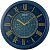 Синие настенные кварцевые часы с аналоговым циферблатом (стрелки). Стрелки: золотистая часовая, золотистая минутная и золотистая секундная. Синий циферблат с римскими цифрами, закрыт стеклом. Часы оснащены постоянной авто подсветкой. Дискретный ход секундной стрелки. Корпус выполнен из пластика.