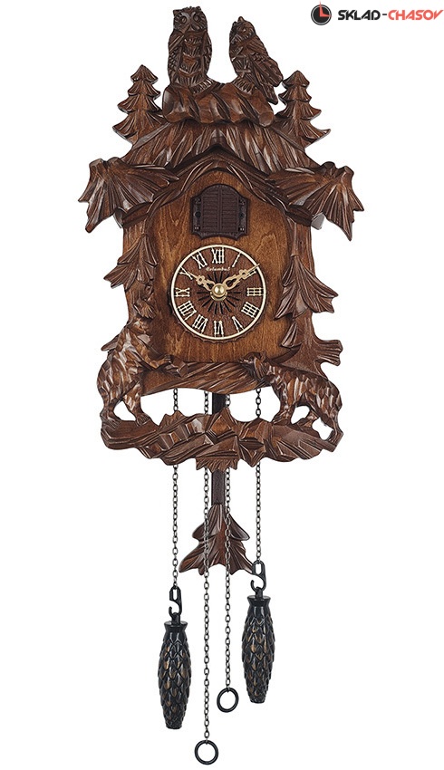 Кварцевые настенные часы с кукушкой Columbus CQ-080C еще называют "Сова".На корпусе часов выпелины две совы .