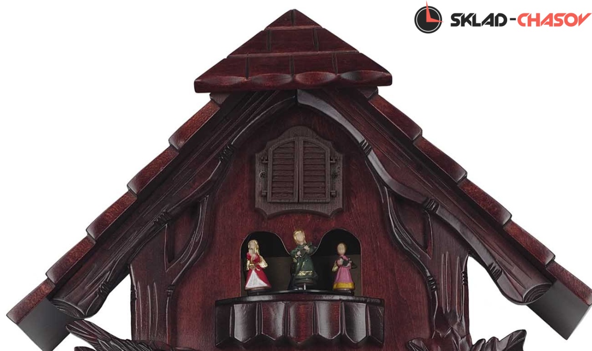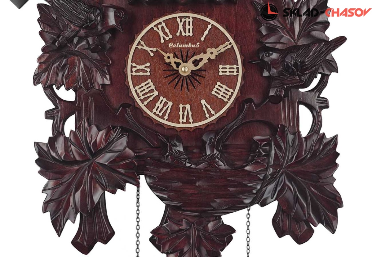 Кварцевые настенные часы с кукушкой Columbus CQ-039 еще называют "Куклы", из-за того что при срабатывании кукушки каждый час фигурки в виде кукол сверху двигаются. .Циферблат римскими цифрами. Цифры и стрелки сделаны из дерева. Кукушка в домик прячется.