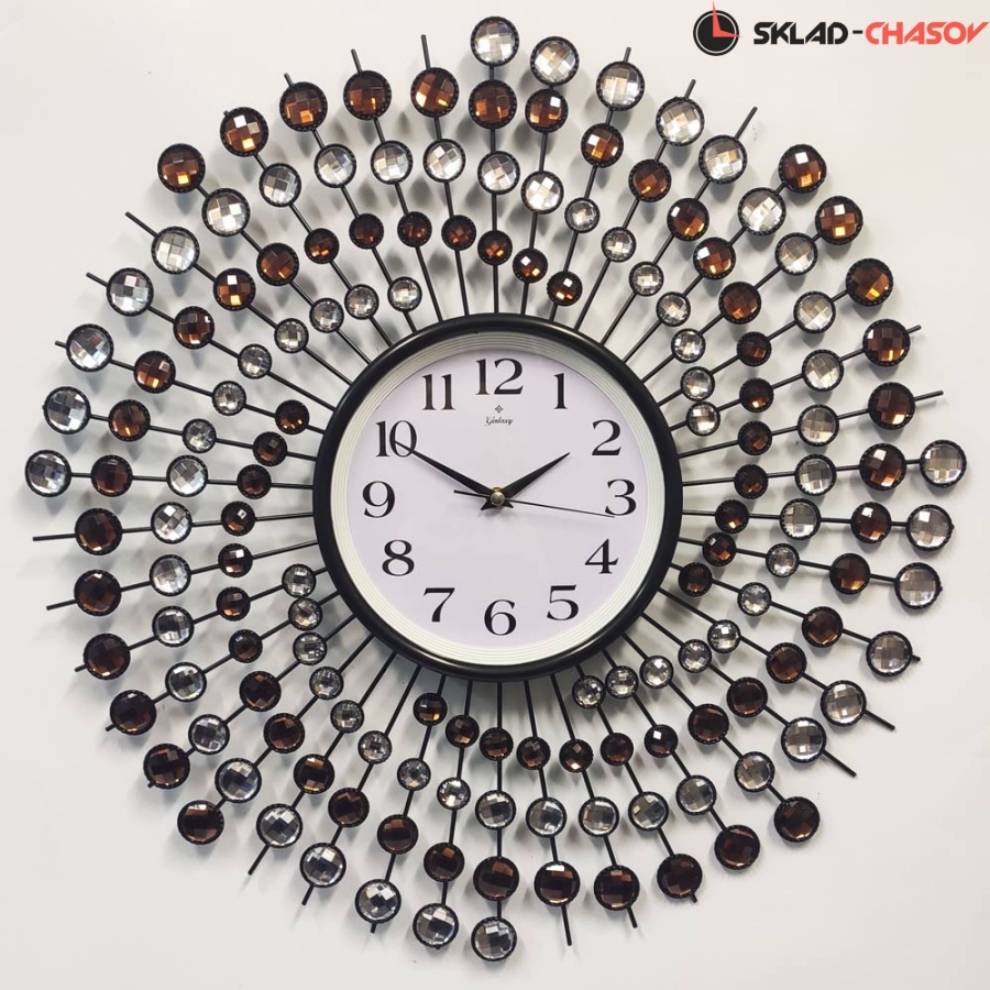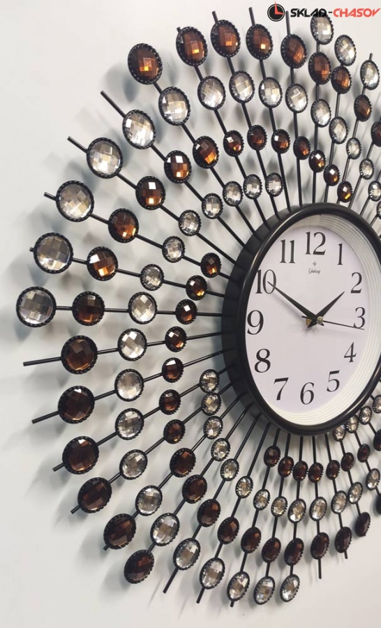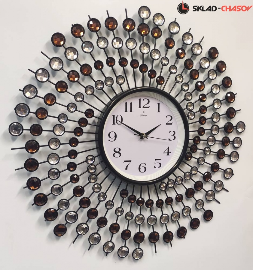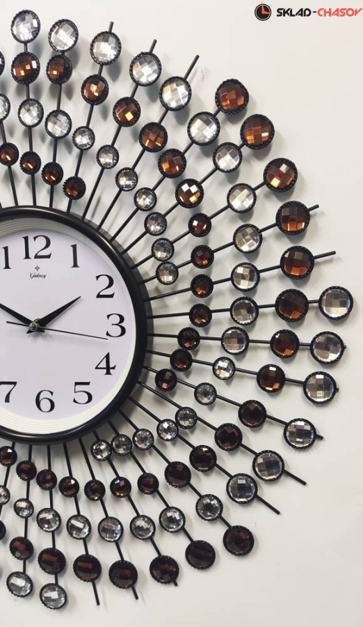 Дизайнерские настенные часы GALAXY AYP-1025 черного цвета со стразами янтарного цвета имеют надежный бесшумный кварцевый механизм, работающий от батарейки типа АА (пальчиковые). Эта модель идеально подойдет для дома в гостиную комнату разных стилей, современный и декор. Временные рамки обозначены арабскими цифрами. Стрелки под стеклом.