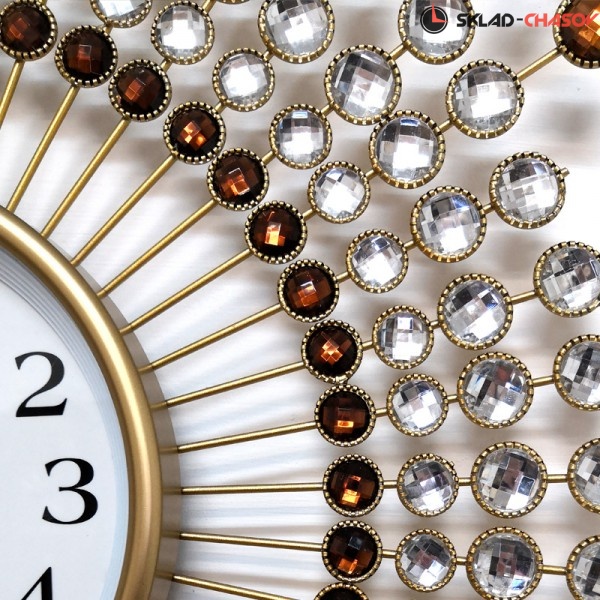 Большие необычные настенные часы GALAXY AYP-1035 K золотого цвета с белым и золотым декором, имеют надежный бесшумный кварцевый механизм, работающий от батарейки типа АА (пальчиковые). Эта модель идеально подойдет для дома в гостиную комнату разных стилей, включая современный и декор. Временные рамки обозначены арабскими цифрами. Стрелки под стеклом.