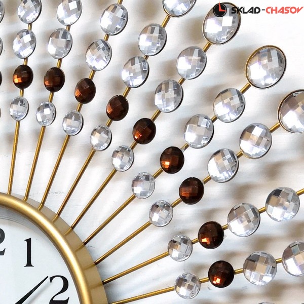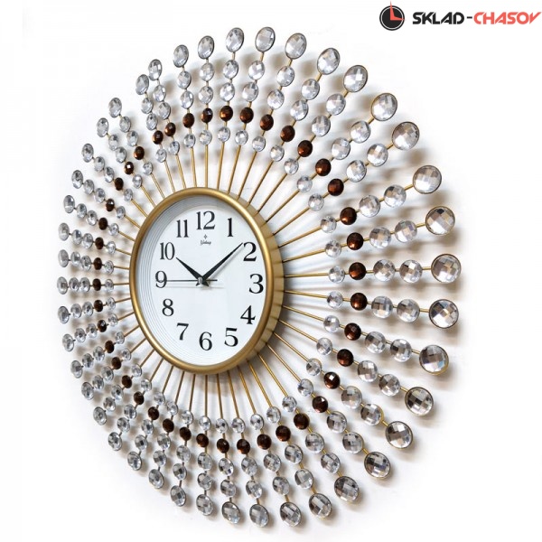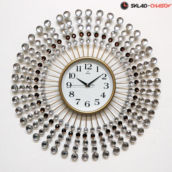 Большие необычные настенные часы GALAXY AYP-1055-K золотого цвета с белым и золотым декором, имеют надежный бесшумный кварцевый механизм, работающий от батарейки типа АА (пальчиковые). Эта модель идеально подойдет для дома в гостиную комнату разных стилей, включая современный и декор. Временные рамки обозначены арабскими цифрами. Стрелки под стеклом.