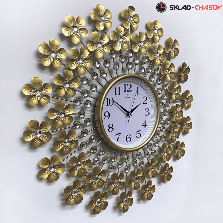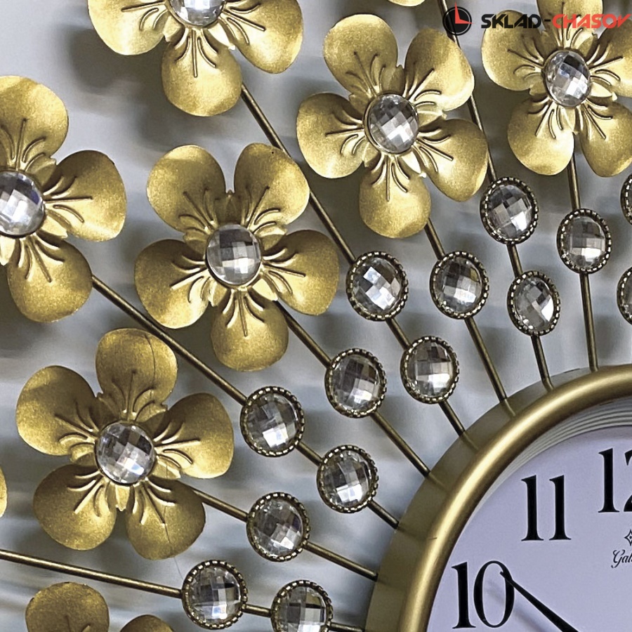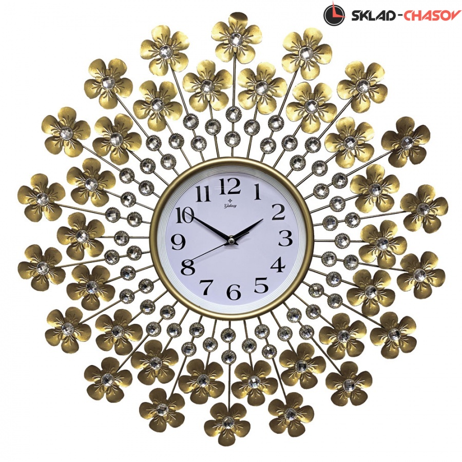 Интерьерные настенные часы GALAXY AYP-1142-К золотого цвета имеют надежный бесшумный кварцевый механизм, работающий от батарейки типа АА (пальчиковые).