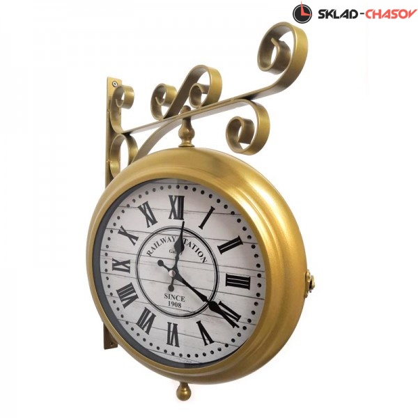 Настенные двусторонние часы на кронштейне GALAXY AYP-820-3 Gold золотого цвета имеют надежный бесшумный кварцевый механизм, работающий от батарейки типа АА (пальчиковые). Эта модель идеально подойдет для дома в гостиную комнату разных стилей, включая восточный и под старину.