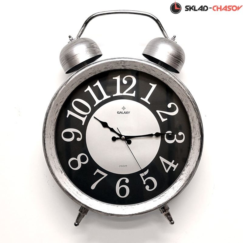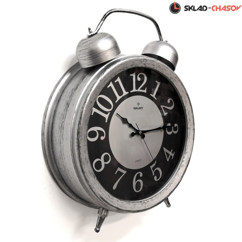 Настенные часы GALAXY D-600-03 в виде будильника в сером цвете с черным циферблатом подойдут как для установки на стол,так их можно повесить на стену. Имеют надежный бесшумный кварцевый механизм, работающий от батарейки типа АА (пальчиковые). Эта модель идеально подойдет для дома в гостиную и детскую комнату разных стилей, включая восточный и под старину. Временные рамки обозначены арабскими цифрами.