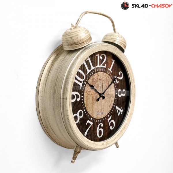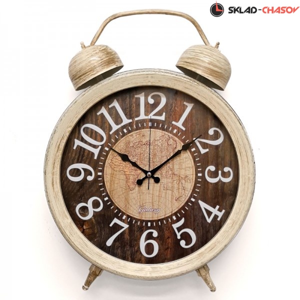 Настенные часы GALAXY D-600-06 в виде будильника цвета Слоновая кость с бронзовой патиной подойдут как для установки на стол,так их можно повесить на стену. Имеют надежный бесшумный кварцевый механизм, работающий от батарейки типа АА (пальчиковые). Эта модель идеально подойдет для дома в гостиную и детскую комнату разных стилей, включая восточный и под старину. Временные рамки обозначены арабскими цифрами.